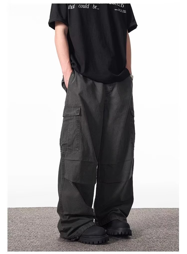 미국 스타일 빈티지 멀티 포켓 세척 가능한 군중 바지 남성과 여성을위한 가을 및 겨울 느슨한 서랍 넓은 다리 다리 다리 다리 캐주얼 바지