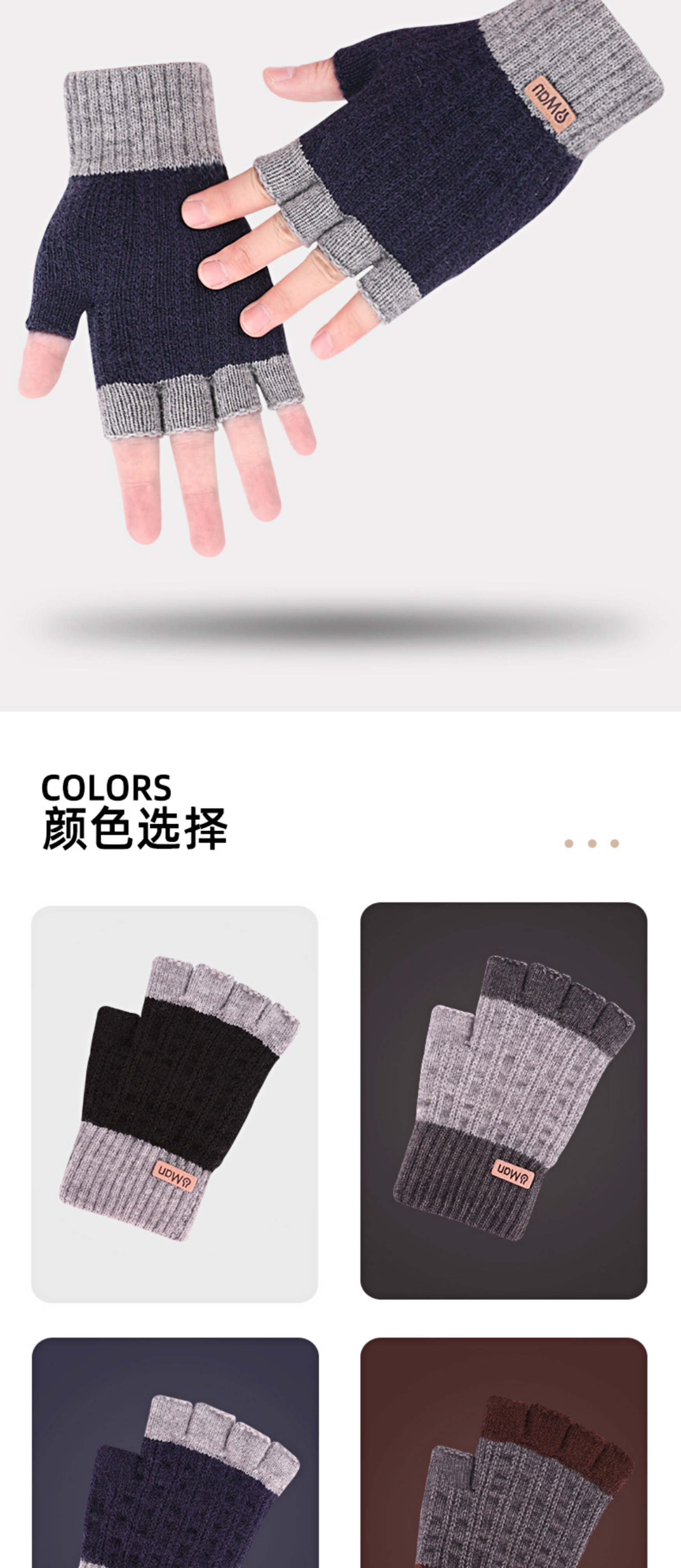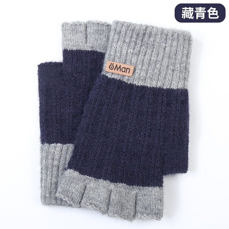 새로운 컬러 블록 반장갑 남성용 가을 겨울 방한 보온 니트 학생용 글쓰기용 도매 성인용