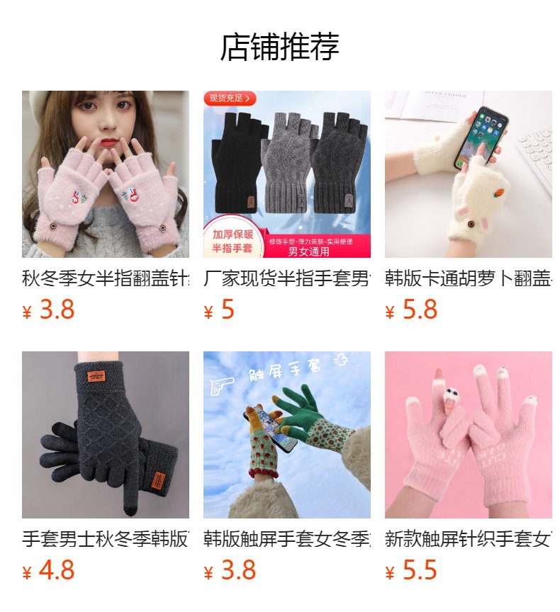 새로운 컬러 블록 반장갑 남성용 가을 겨울 방한 보온 니트 학생용 글쓰기용 도매 성인용스토어 가기