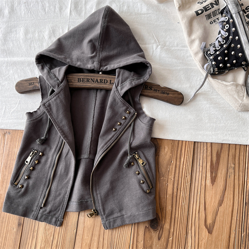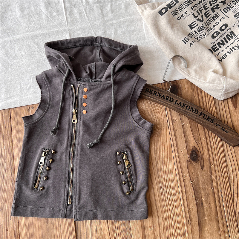 [재고] 일본 중고대 아동복 올시즌 어린이 리벳 후드조끼