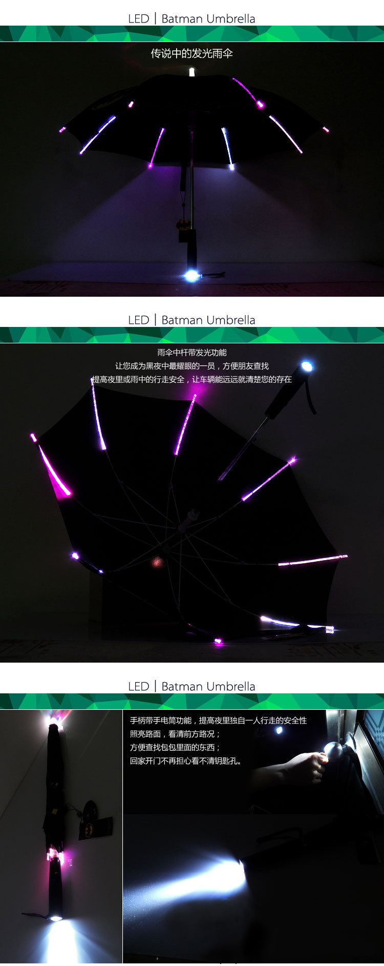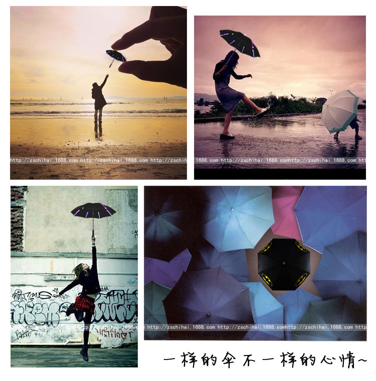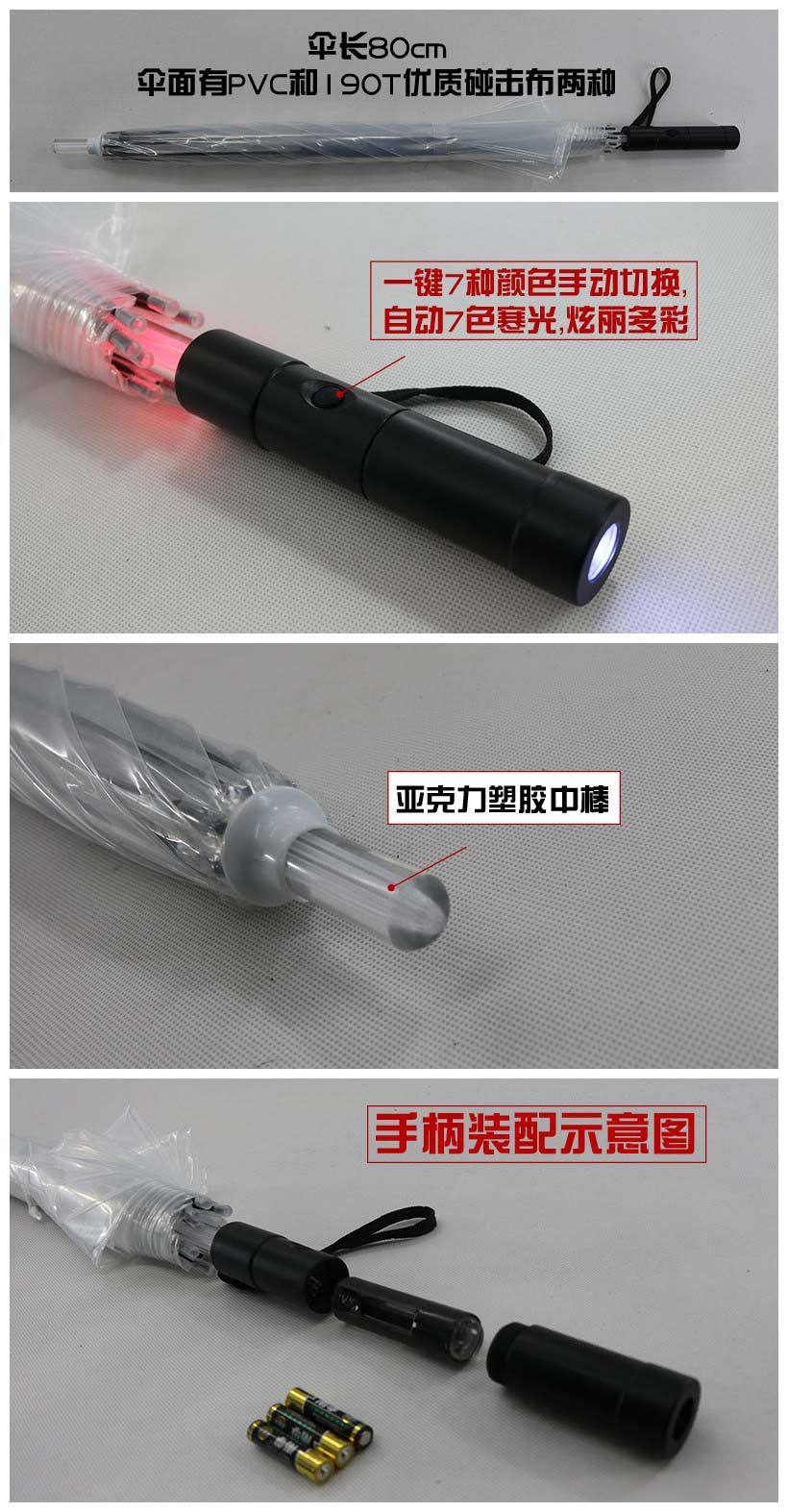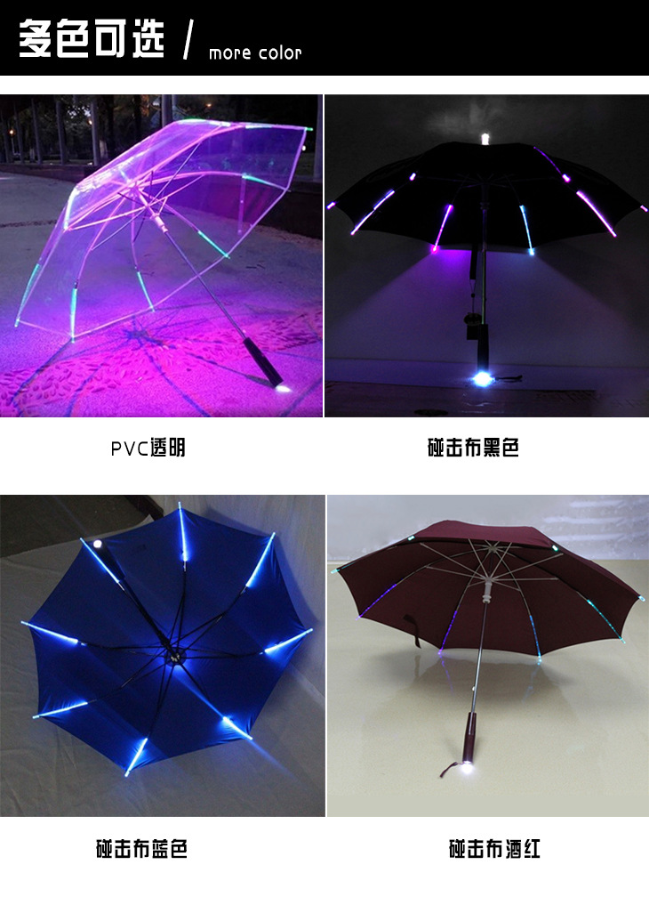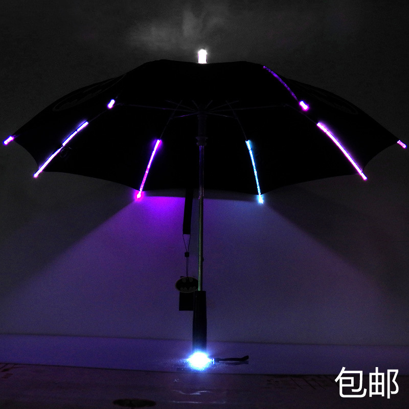도매 LED 발광 우산 직선형 다채로운 조명 우산 변색 방풍 우산 무대 소품 바 분위기 우산