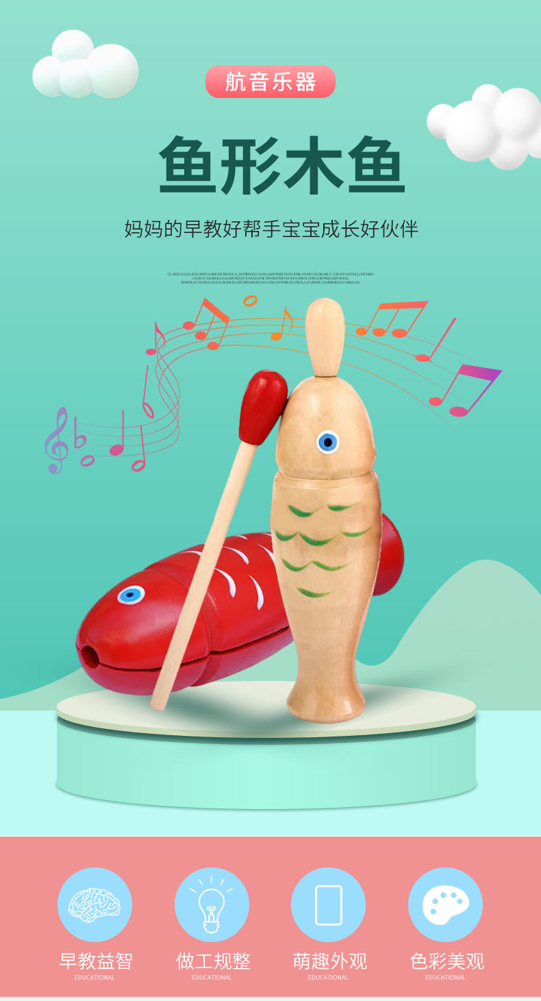 타악기 나무 작은 물고기 방지 물고기 모양의 나무 물고기 모양의 어린이 음악 교육 에이즈 물고기 모양의 반지 카트리지 부모-자식 장난감스토어 가기