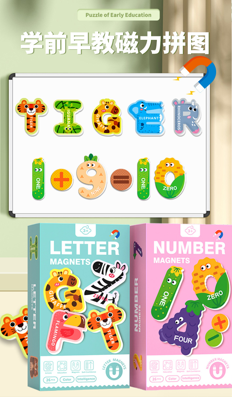 어린이 조기 교육 자기 붙여 넣기 퍼즐 3-6 아기 영어 편지 만화 디지털 유치원 교육 장난감스토어 가기