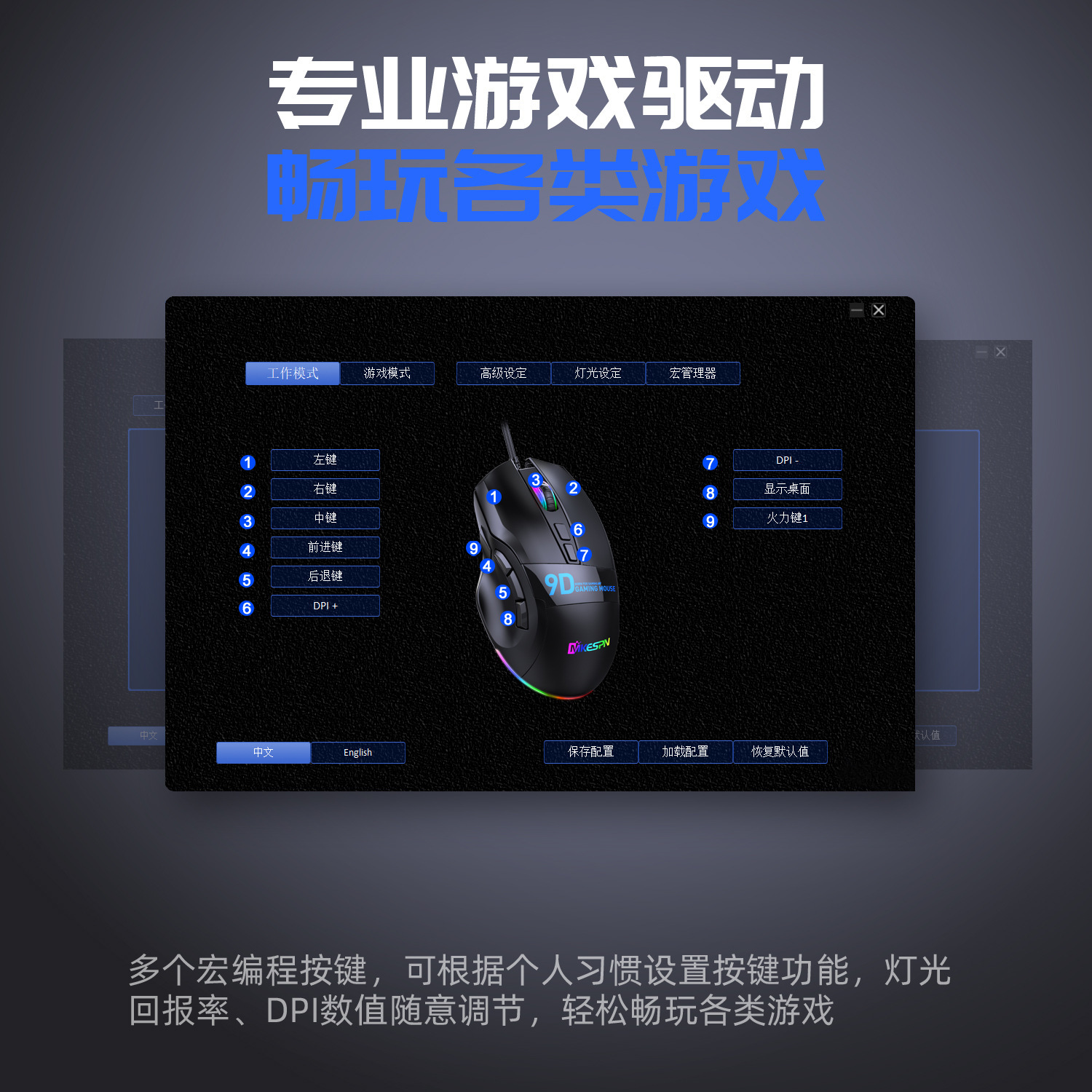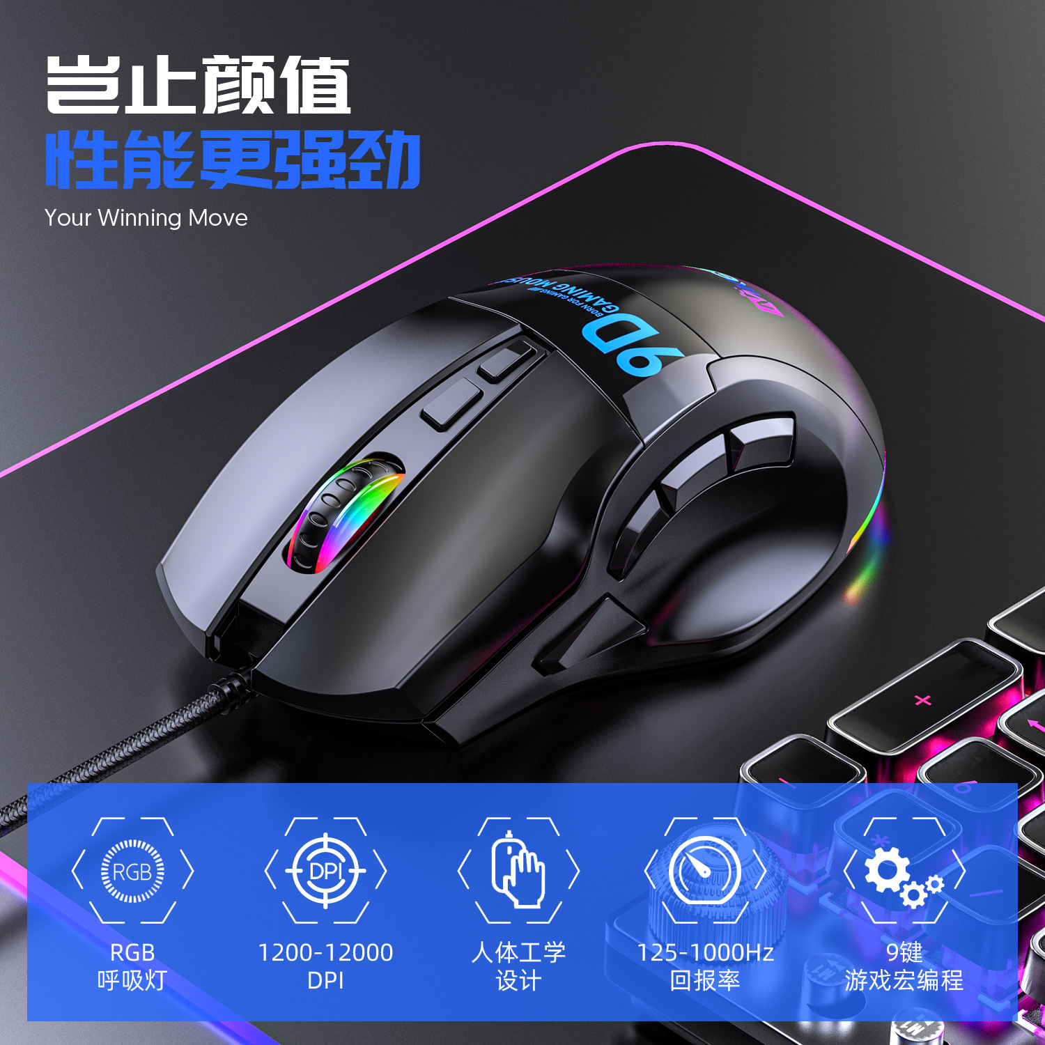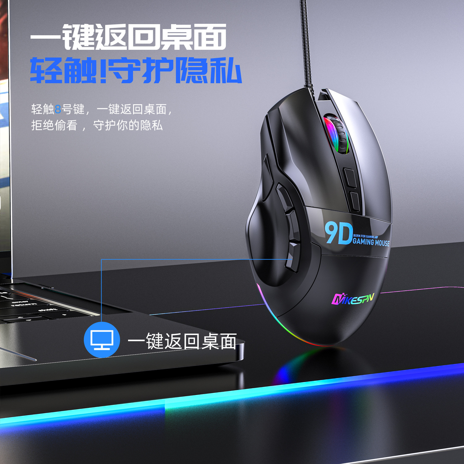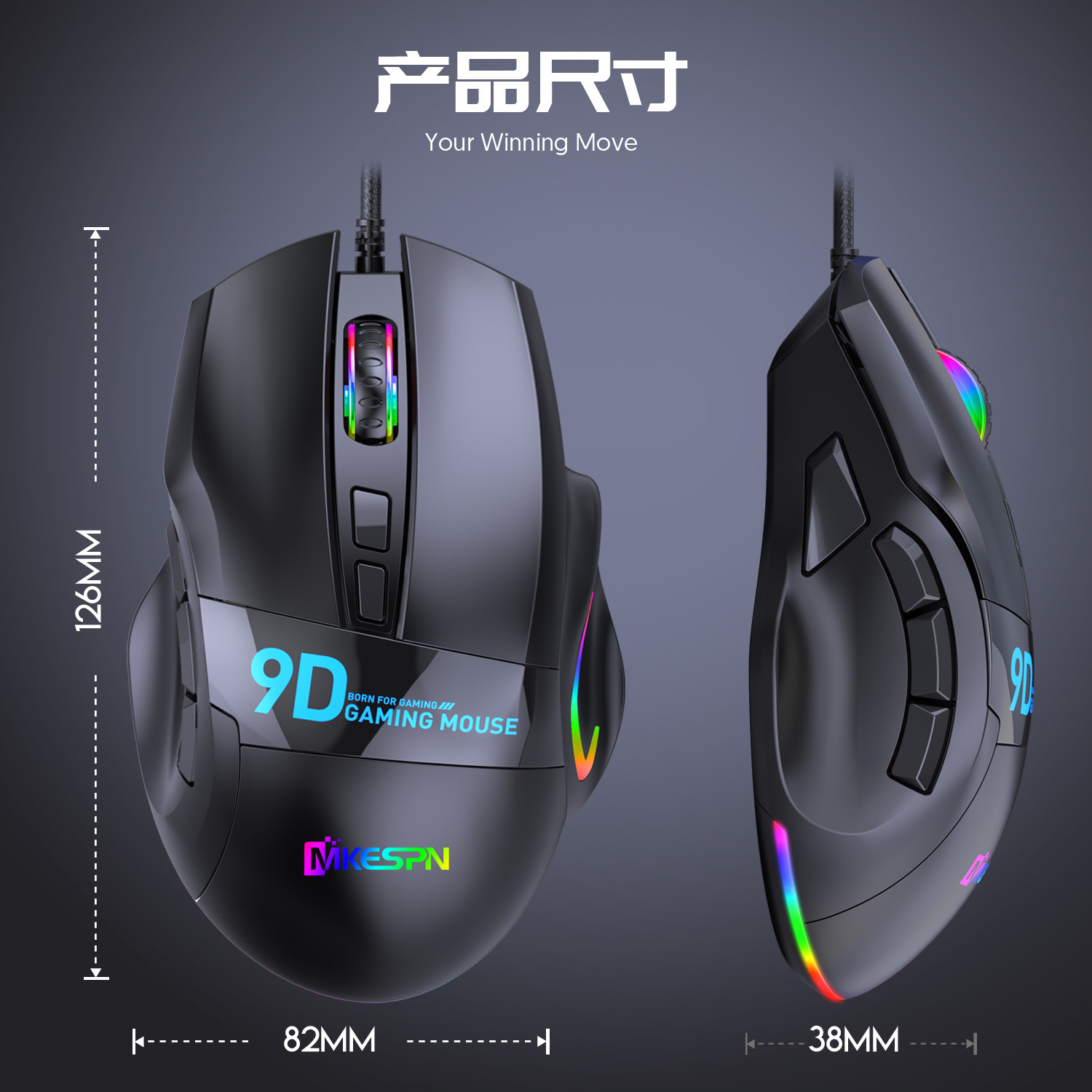 MKESPN 멀티 키 게임 마우스 9 키 RGB 유선 매크로 정의 게임 마우스 컴퓨터 액세서리 배치스토어 가기