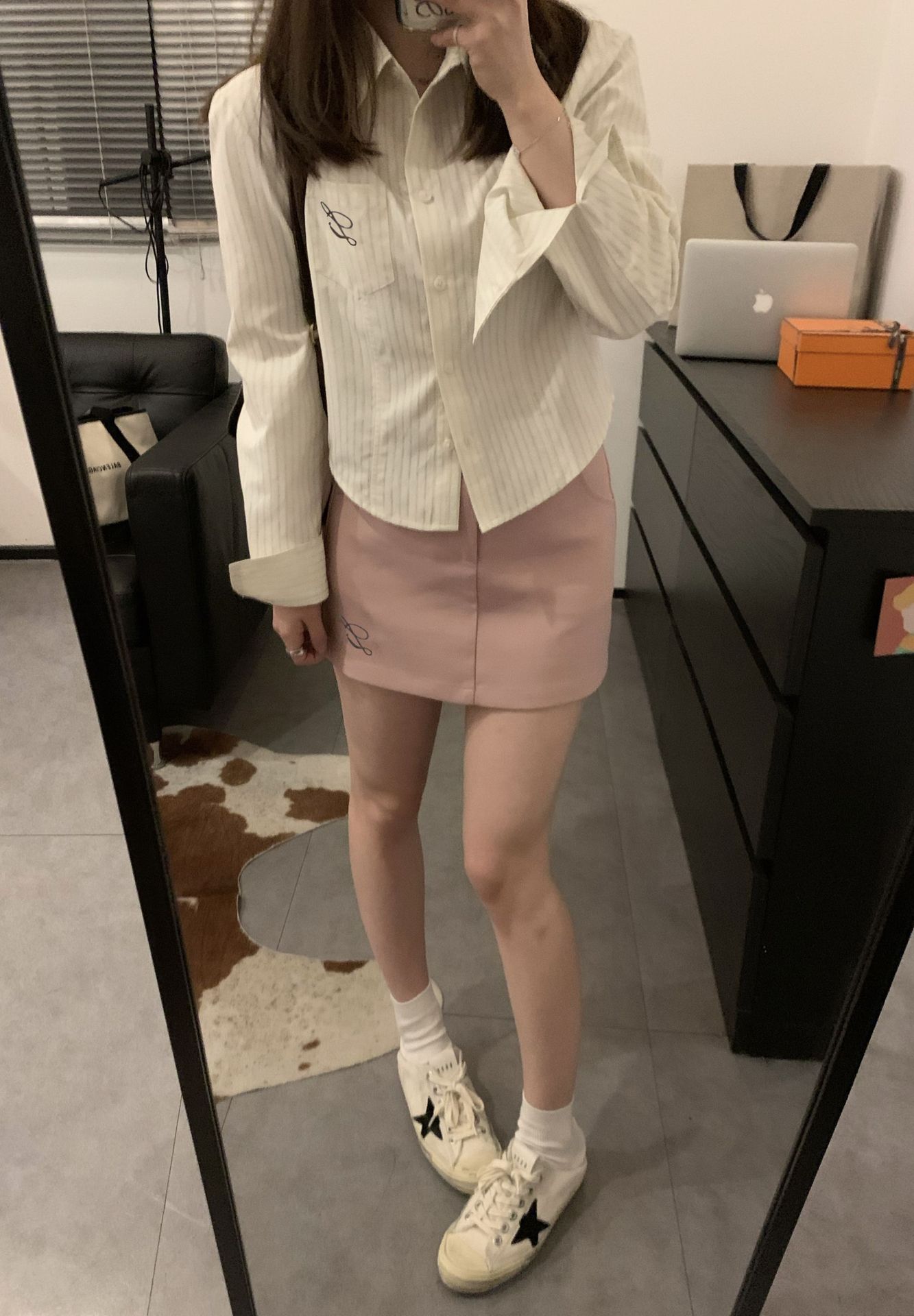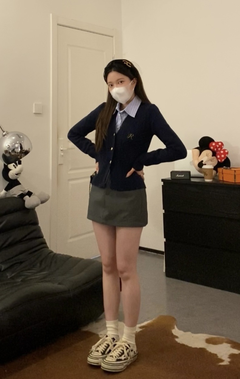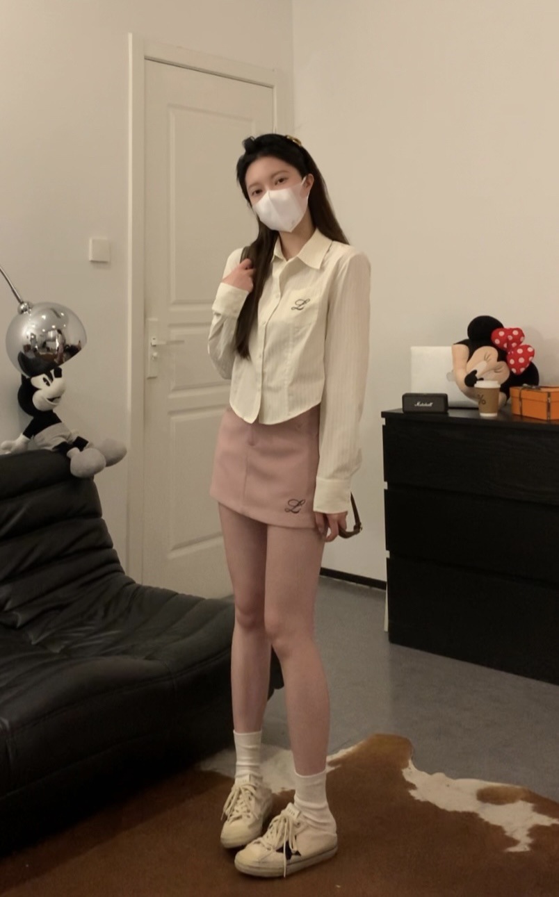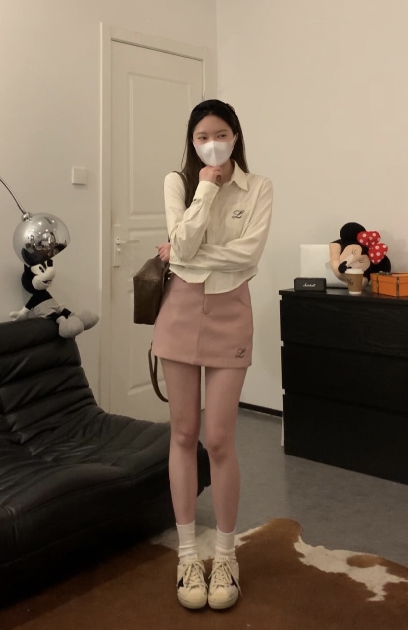 한국 스타일 수 놓은 짧은 파란색 줄무늬 셔츠 여성 셔츠 2024 봄과 가을 새로운 디자인 센스 내베이스 탑스토어 가기