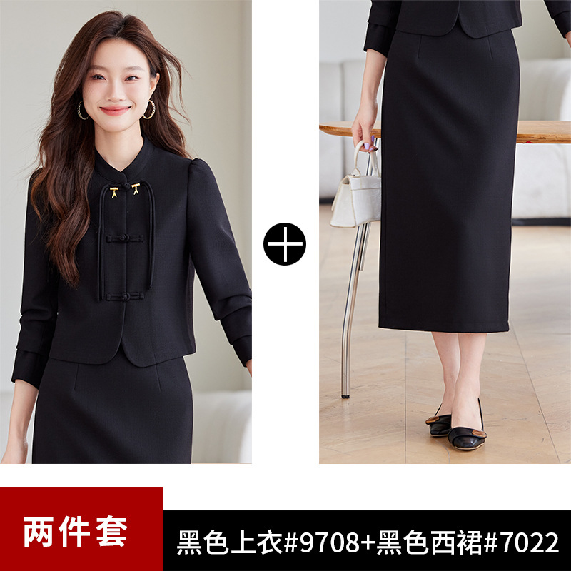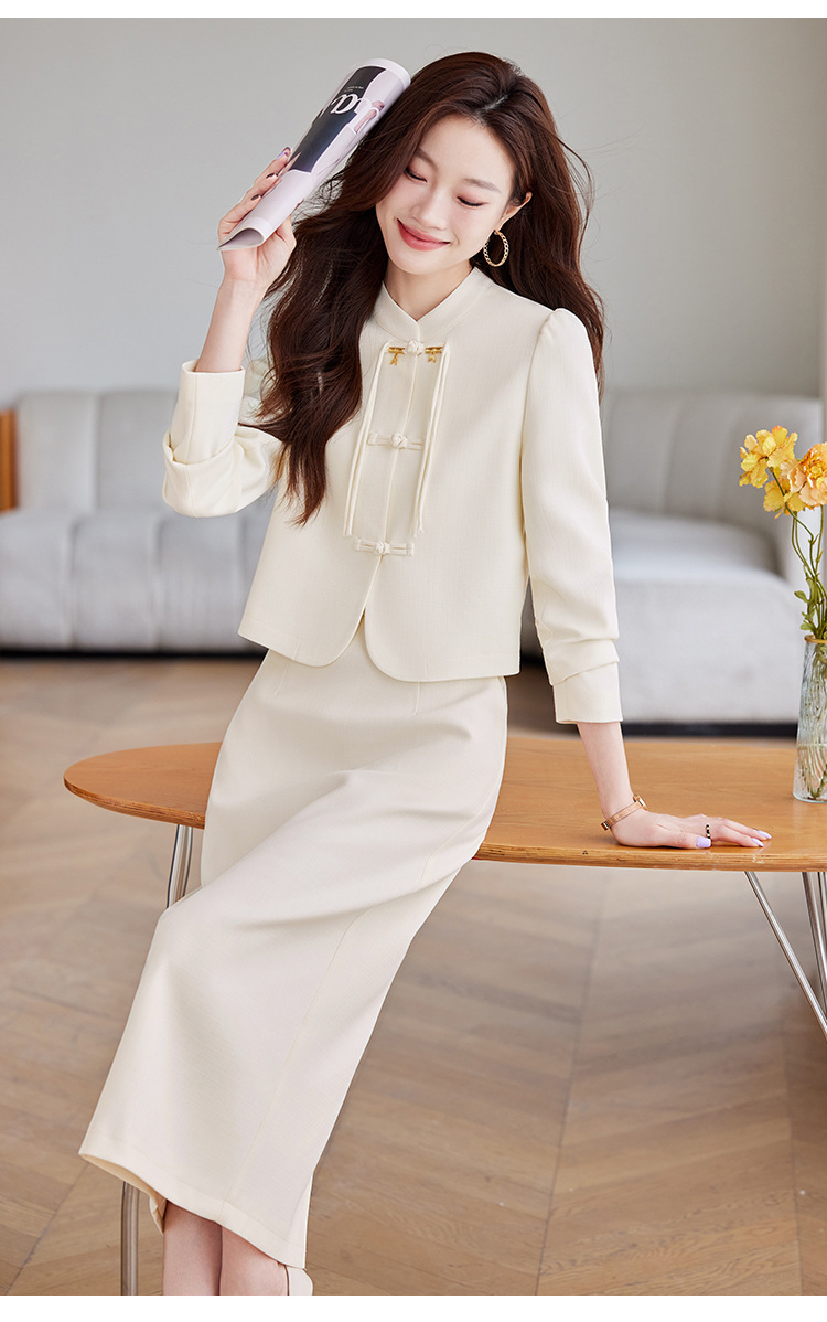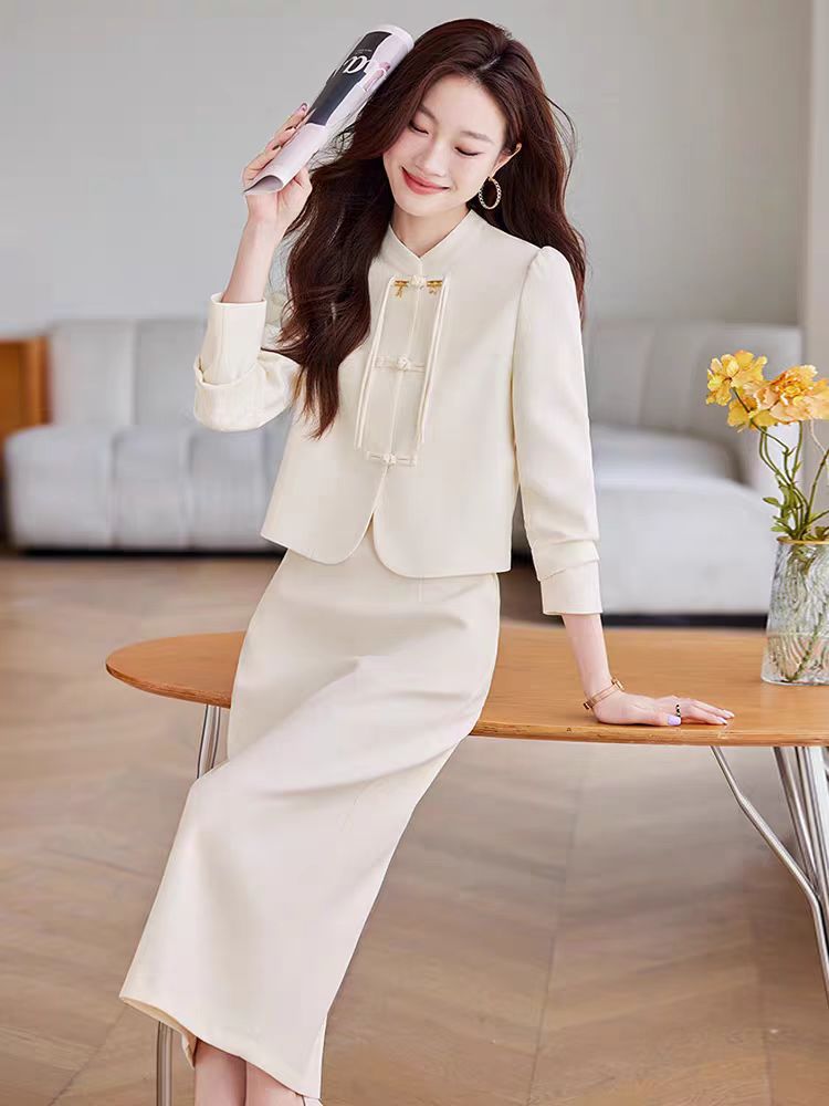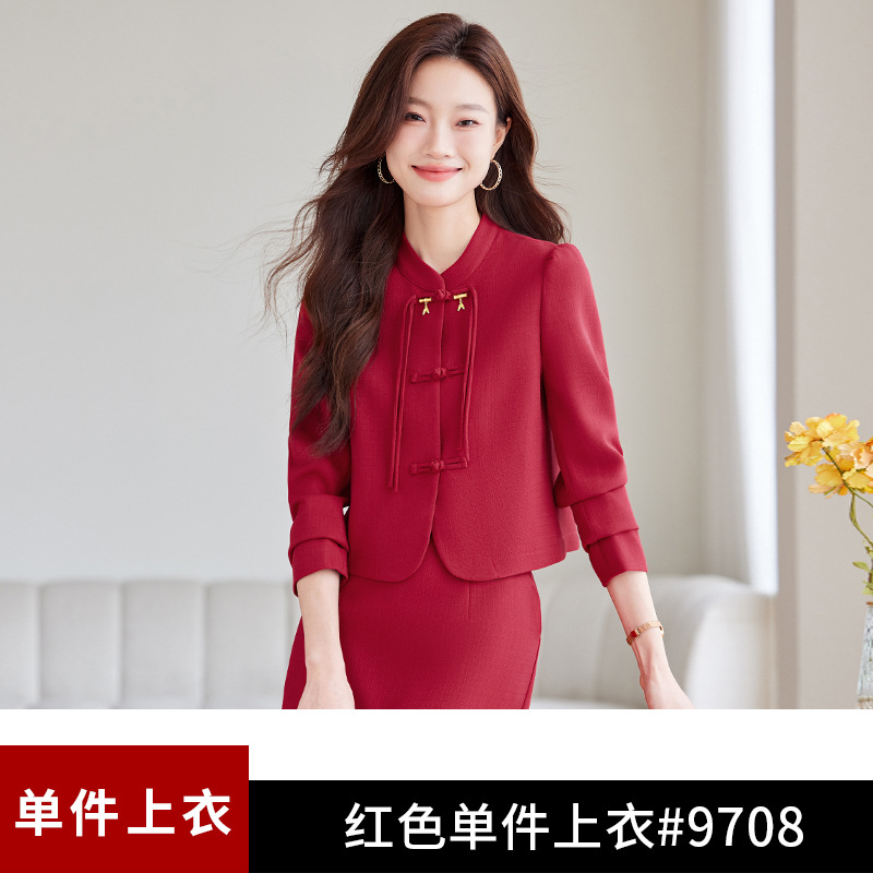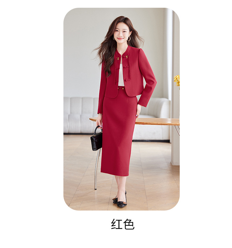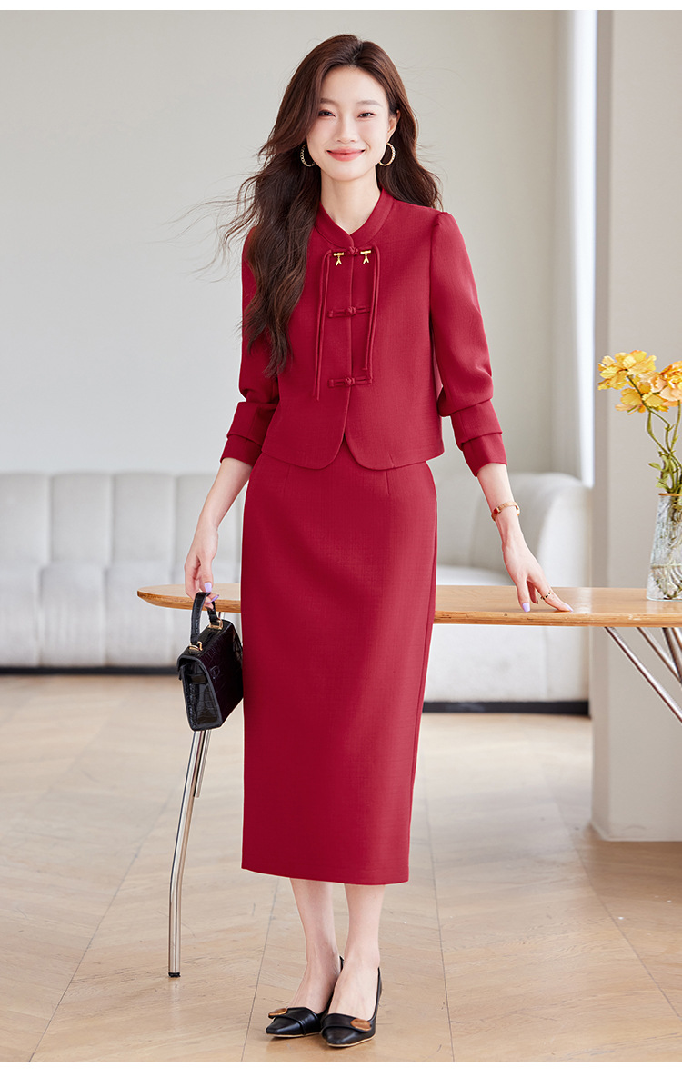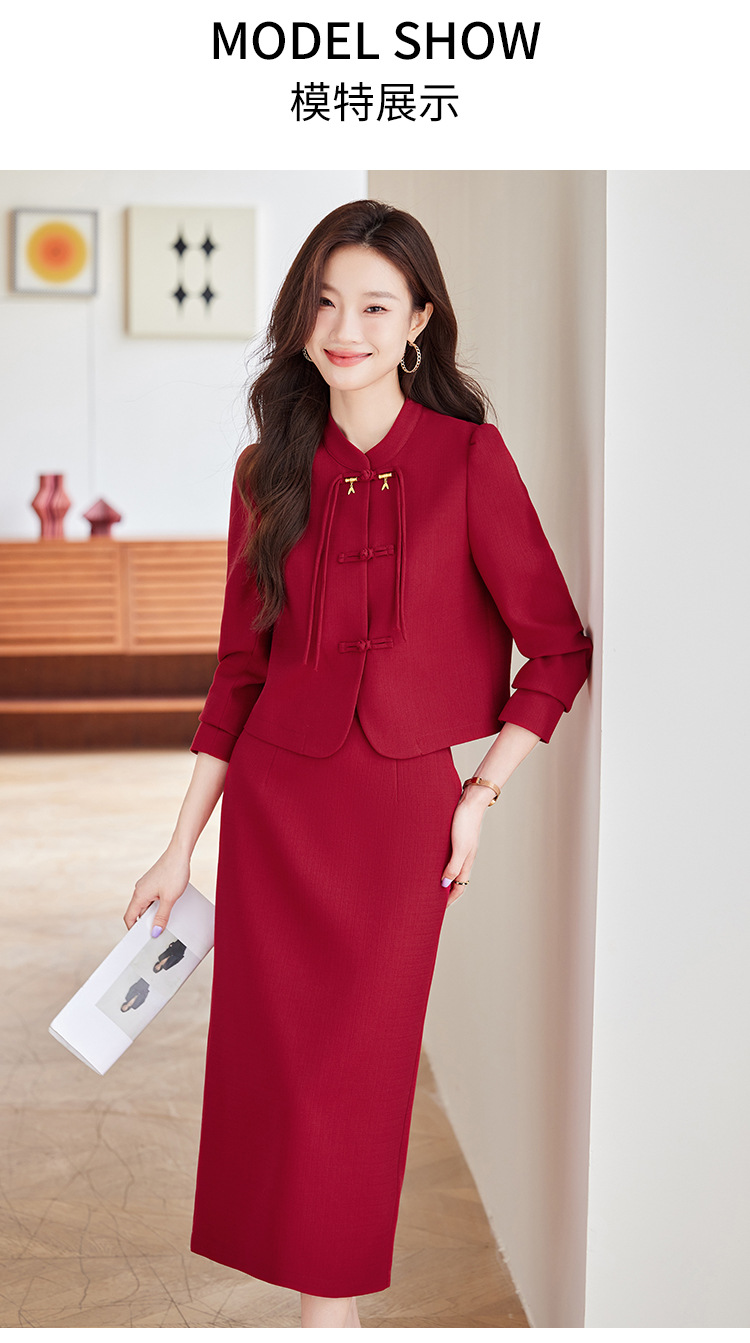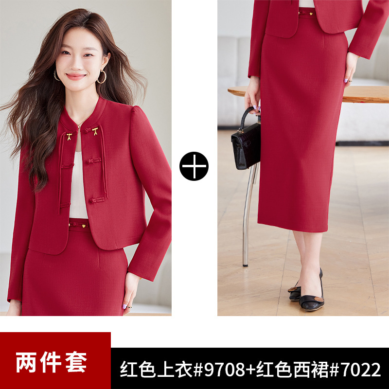 2024 새로운 직장 기질 여신 팬 간 비즈니스 세트 세트 레드 원피스 세트 재킷 여성의 봄과 가을