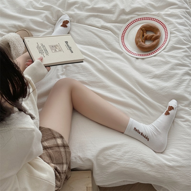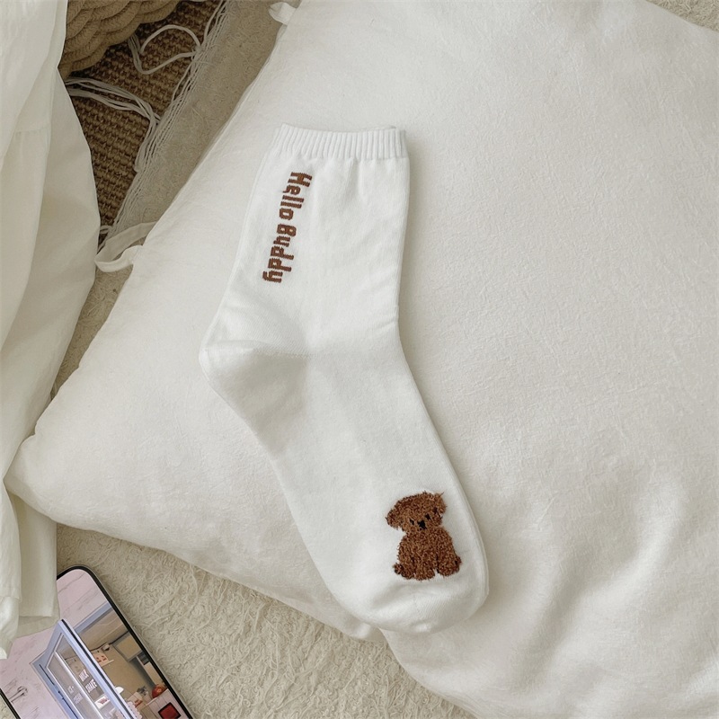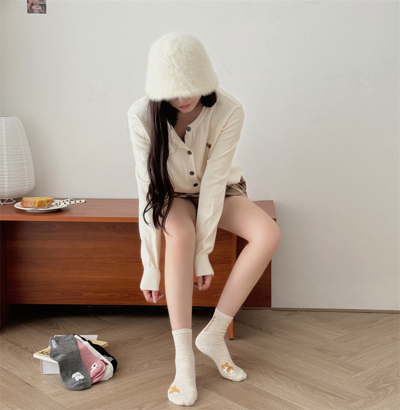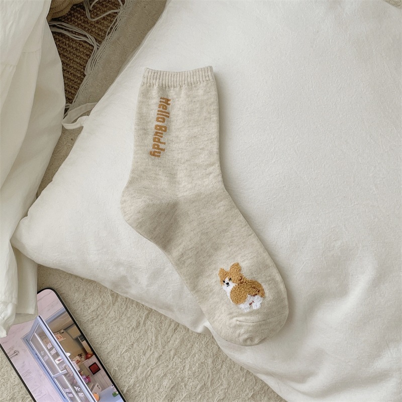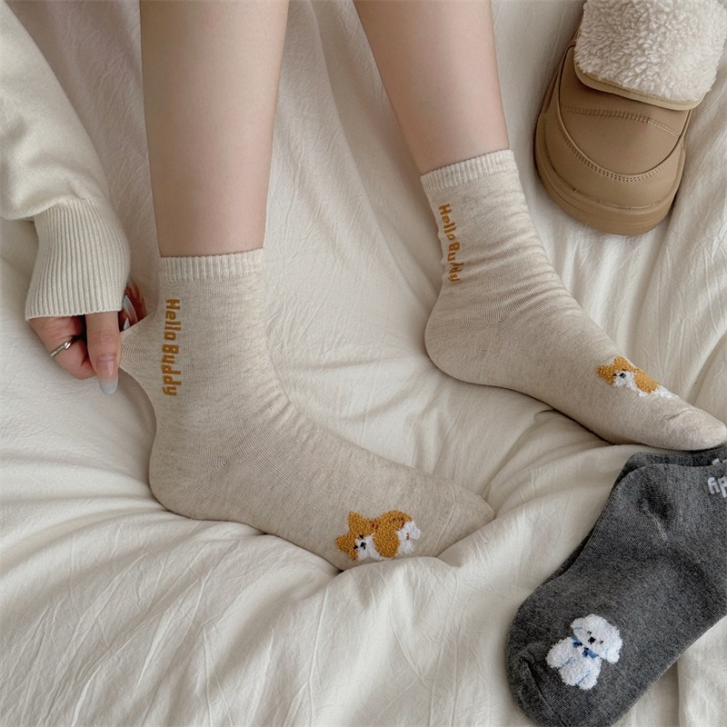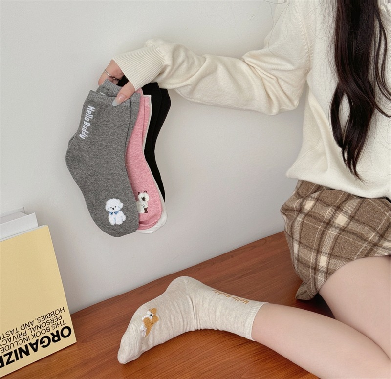 한국 동대문 새 여성 양말 달콤한 3 차원 융합 만화 강아지 중간 튜브 양말 면 편지 짧은 튜브 양말