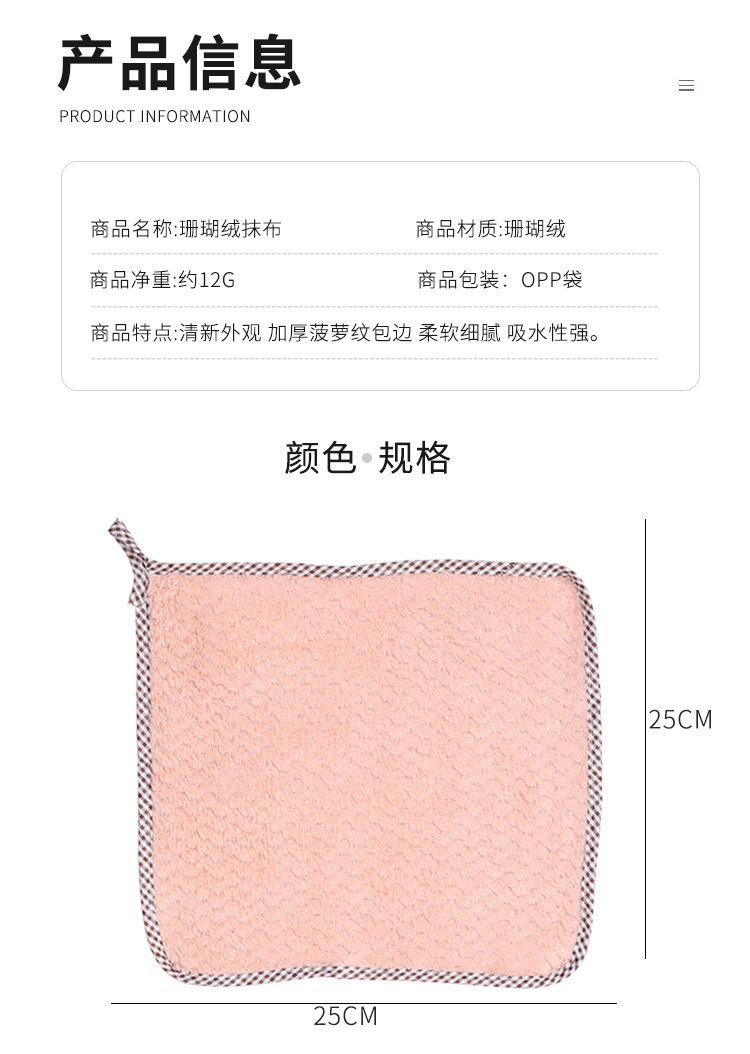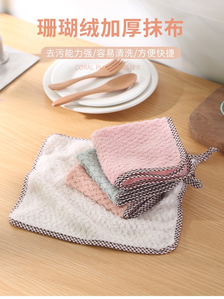 매달린 산호 양털 수건 주방 수건 린트 무료 흡수성 행주 접시 천 청소 천