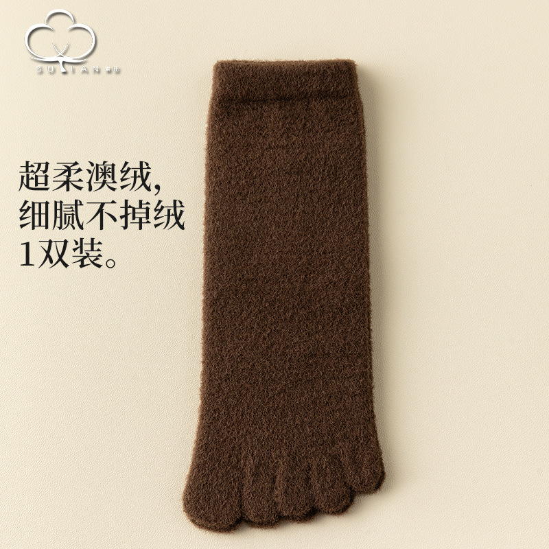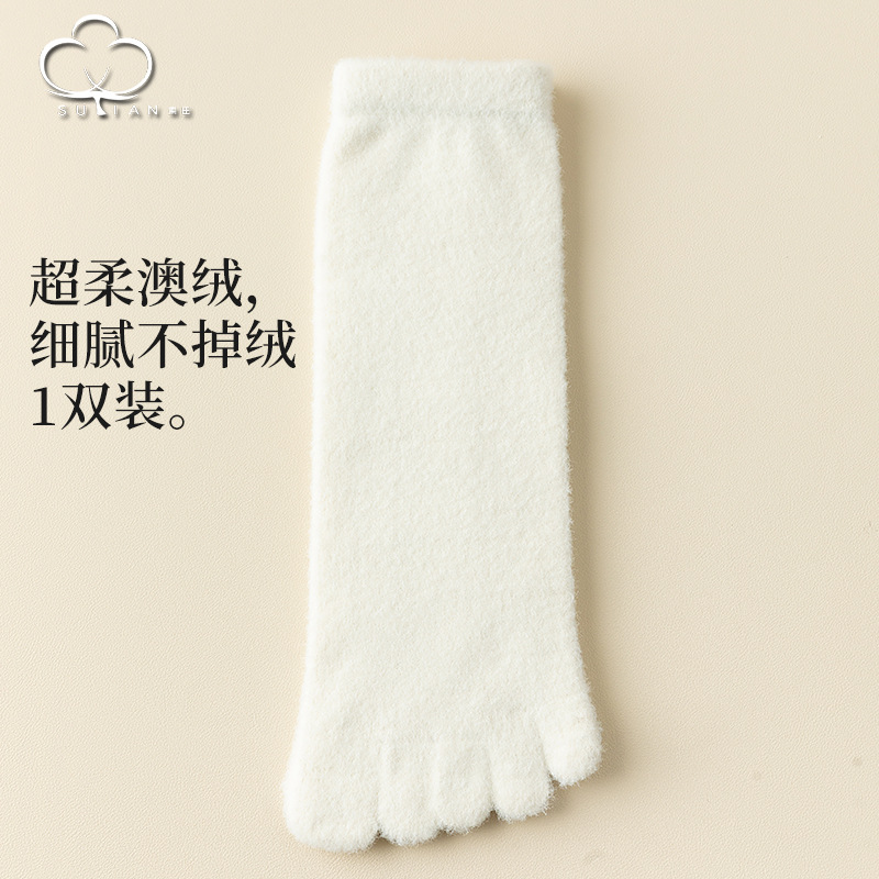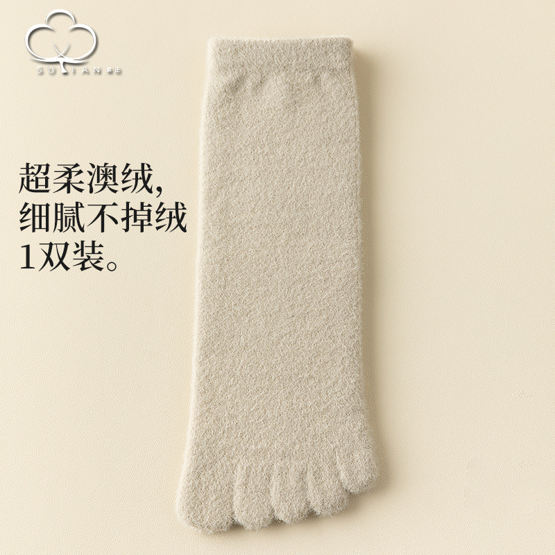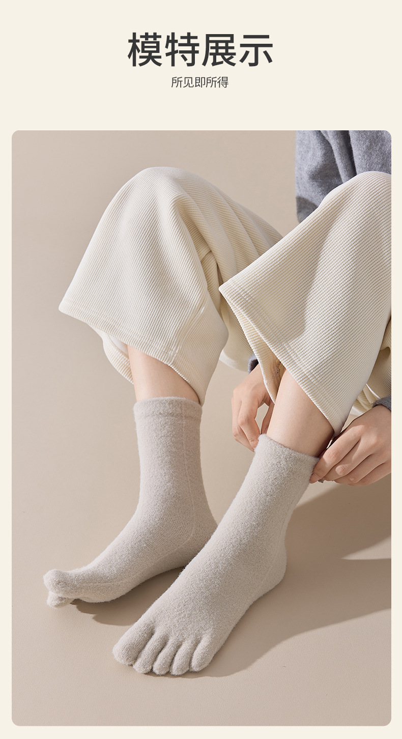 60-65g± 호주산 양털 다섯손가락 양말 여성용 중간 길이 양말 겨울용 두꺼운 따뜻한 무봉제 수면 양말스토어 가기
