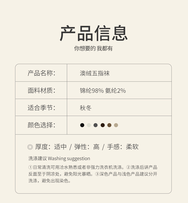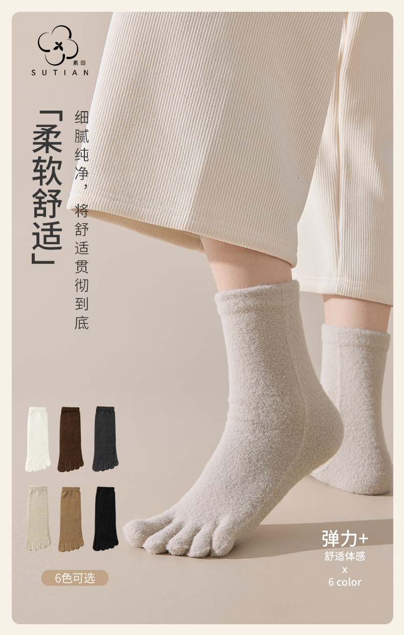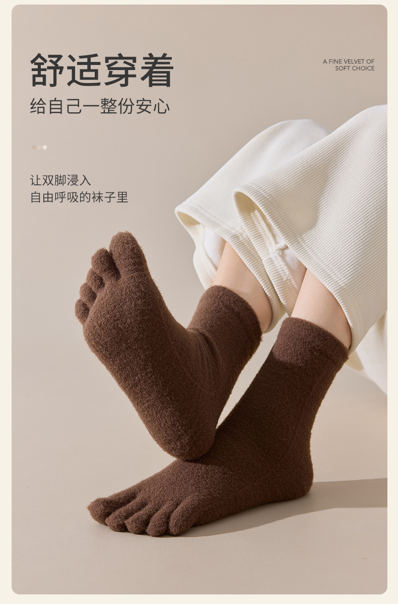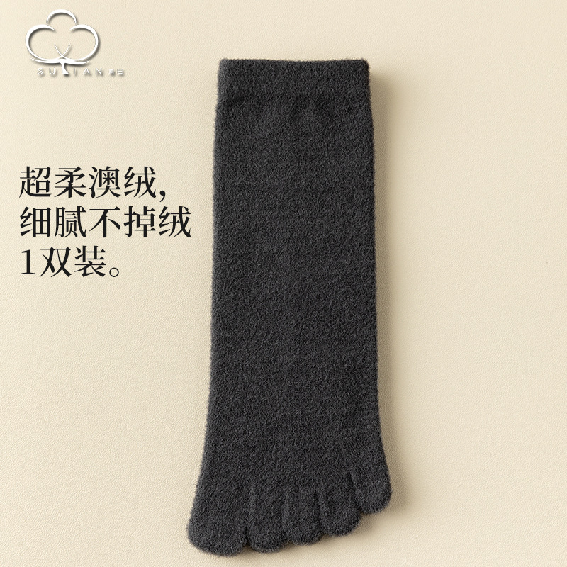 60-65g± 호주산 양털 다섯손가락 양말 여성용 중간 길이 양말 겨울용 두꺼운 따뜻한 무봉제 수면 양말스토어 가기