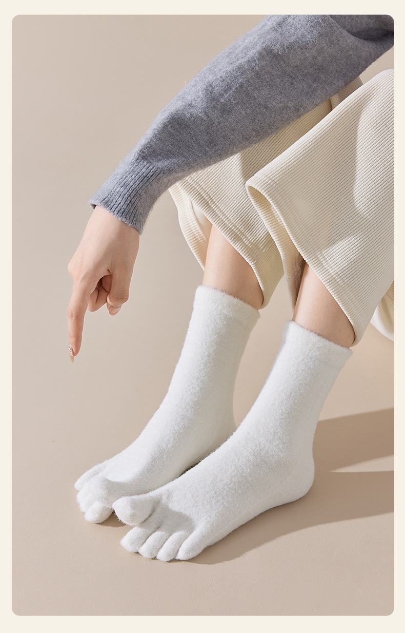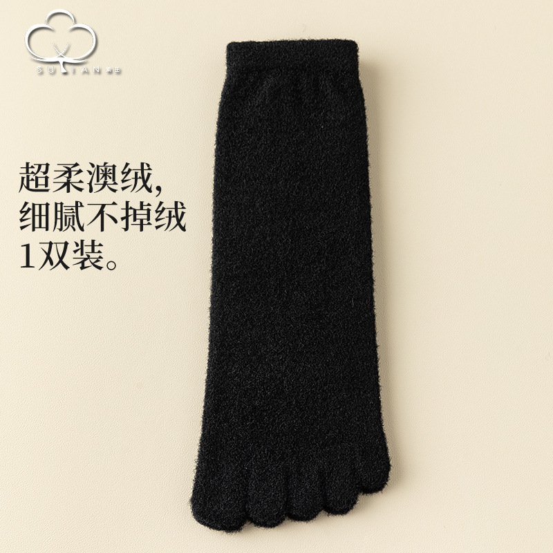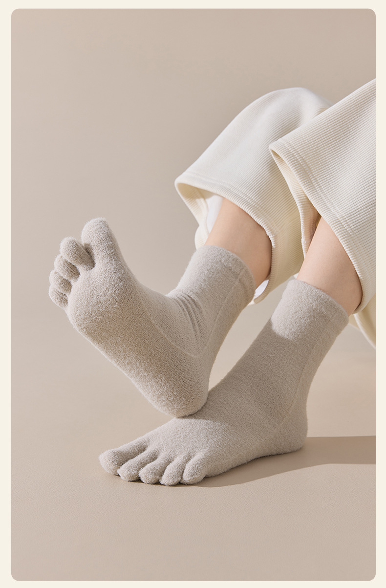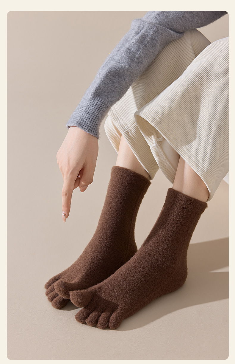 60-65g± 호주산 양털 다섯손가락 양말 여성용 중간 길이 양말 겨울용 두꺼운 따뜻한 무봉제 수면 양말