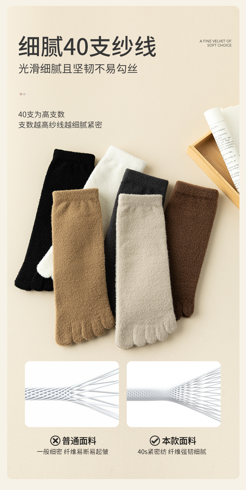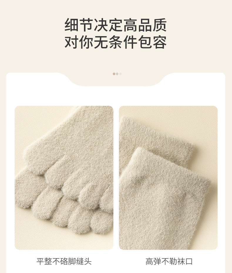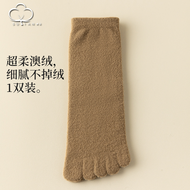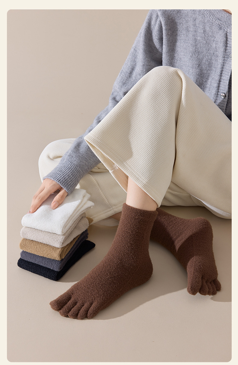 60-65g± 호주산 양털 다섯손가락 양말 여성용 중간 길이 양말 겨울용 두꺼운 따뜻한 무봉제 수면 양말
