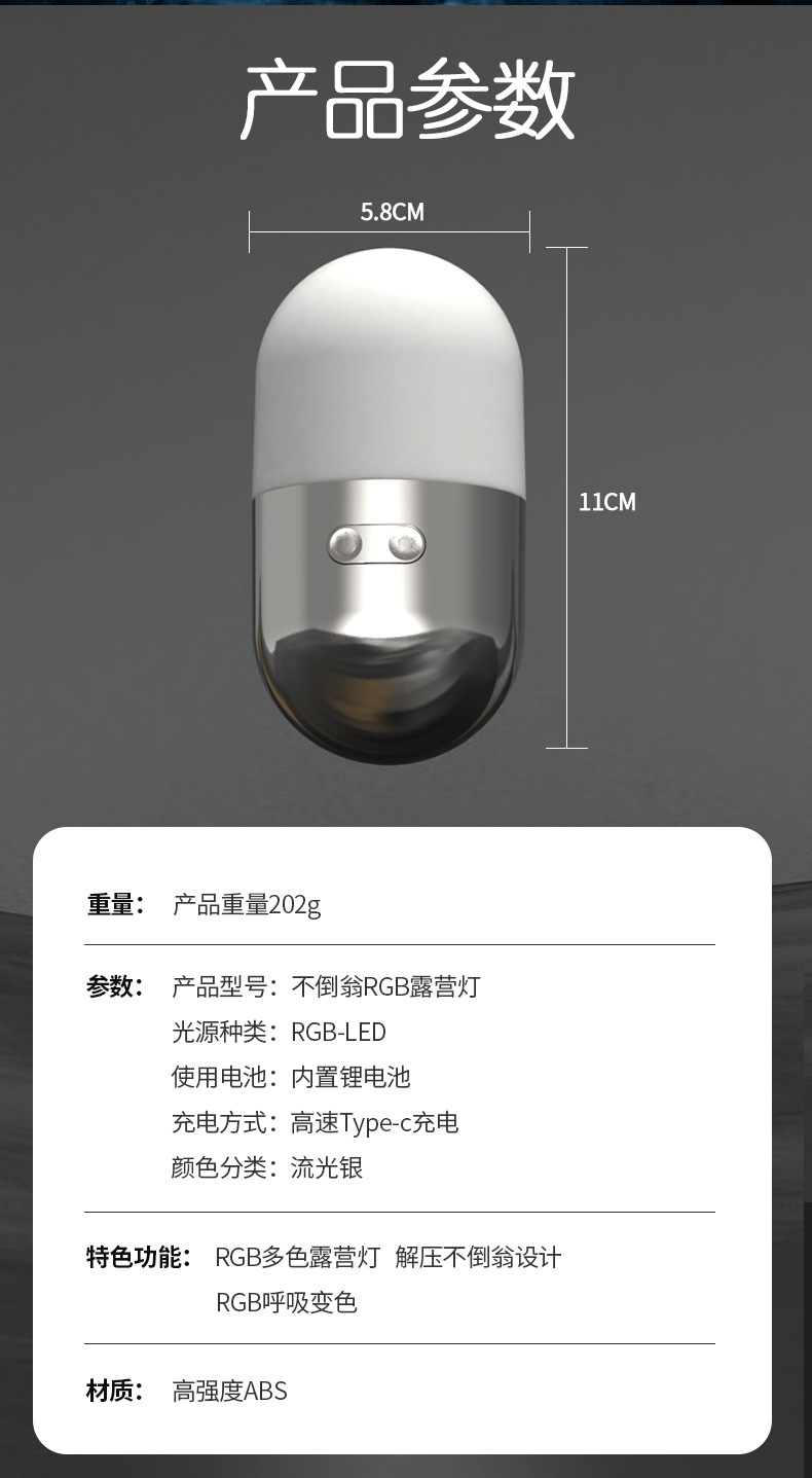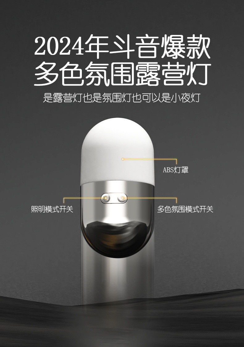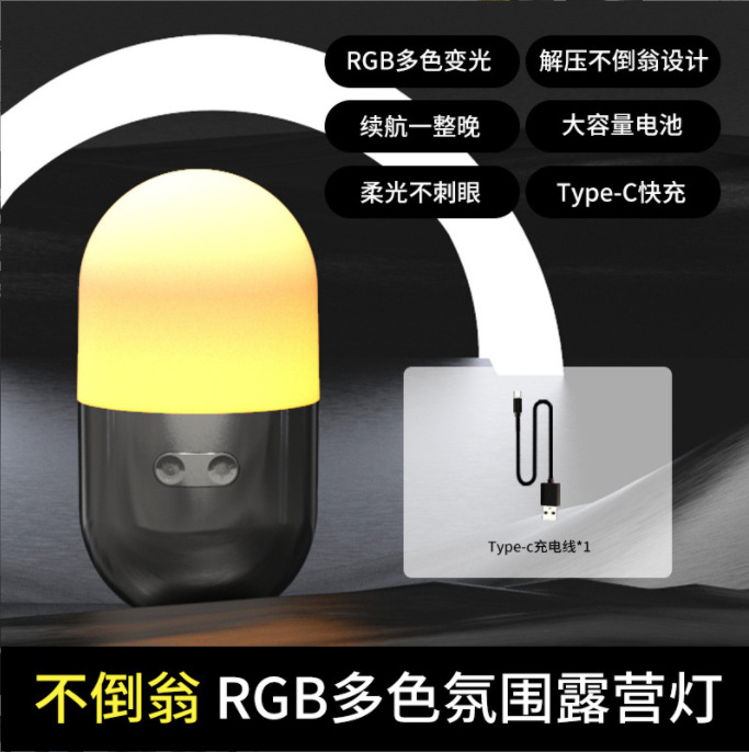 국경 간 새로운 텀블러 캠핑 램프 충전식 침대 옆 LED 야간 조명 야외 휴대용 미니 분위기 캠핑 램프
