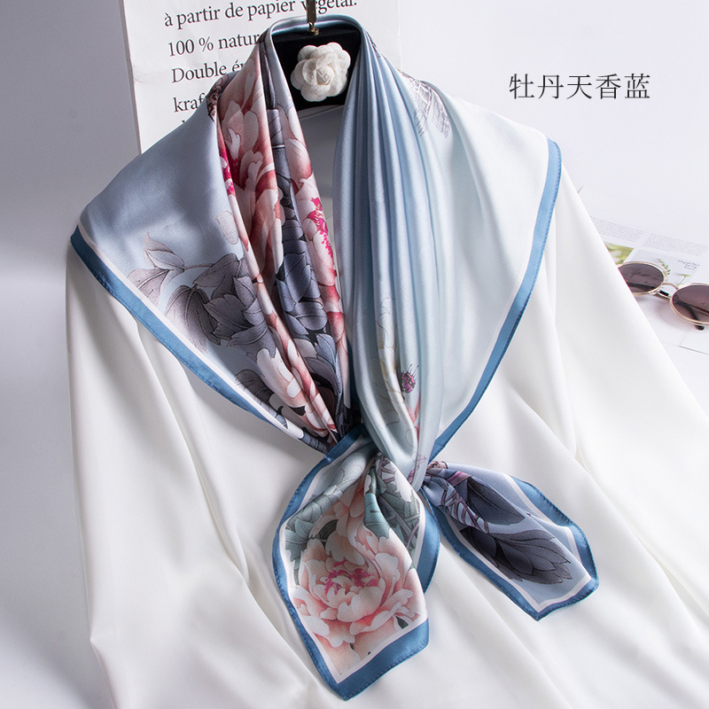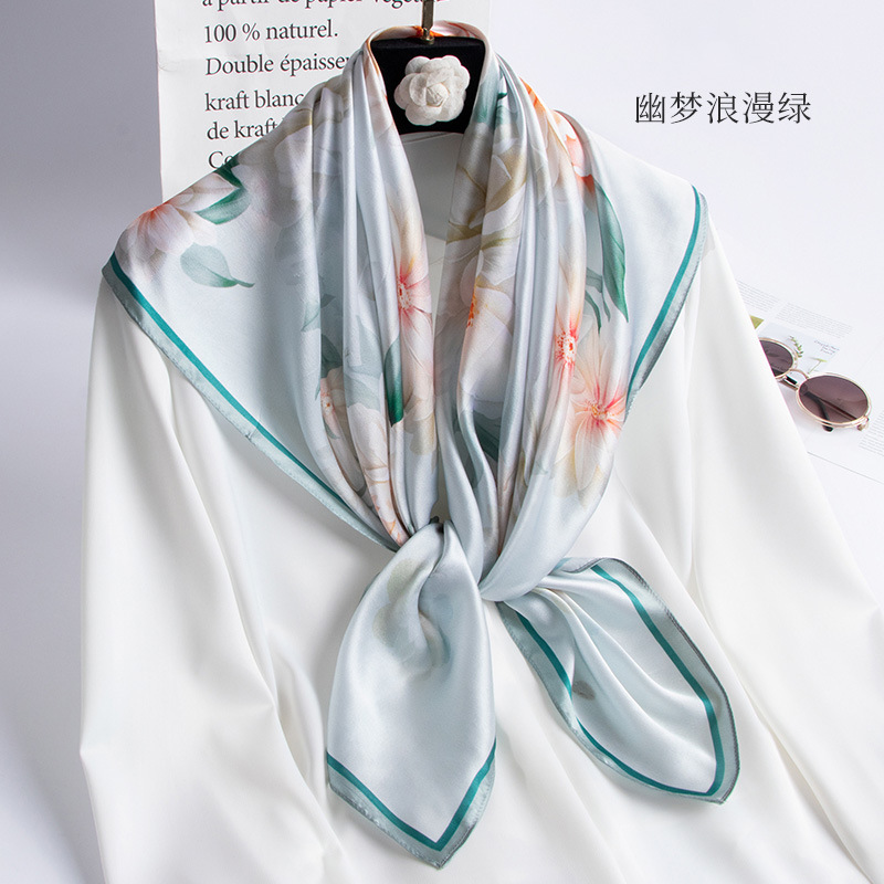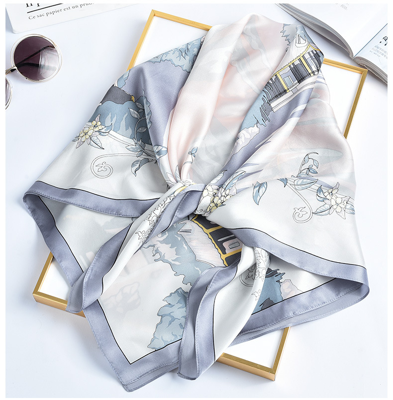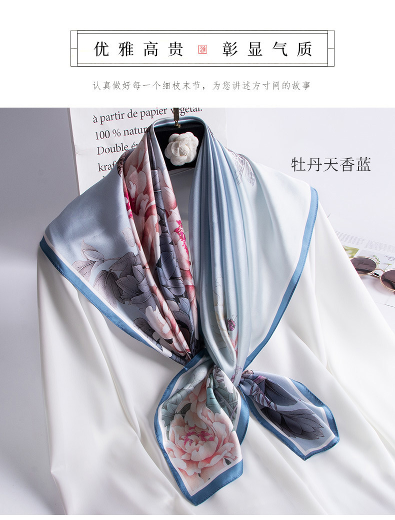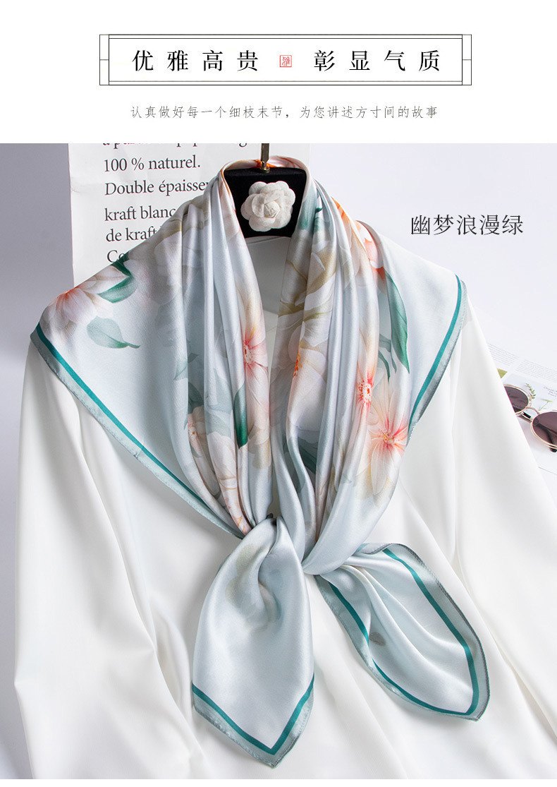 여성을위한 100% 뽕나무 실크 스퀘어 스카프 부드럽고 절묘한 인쇄 어머니의 휴일 선물 매일 착용 및 매칭스토어 가기