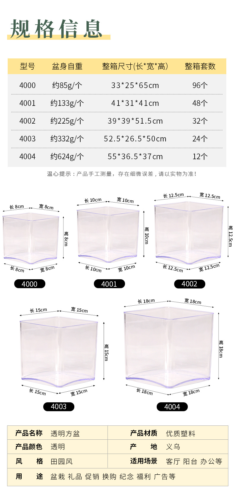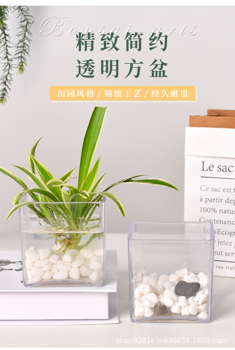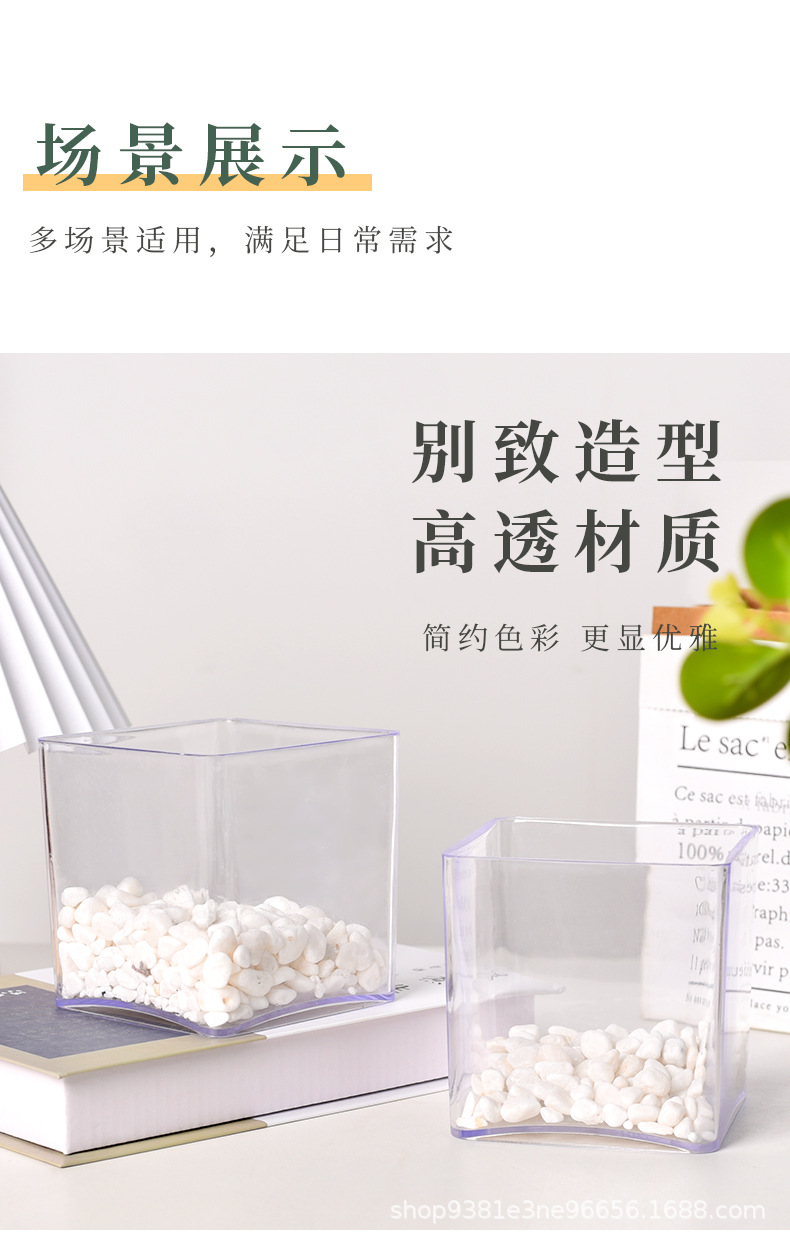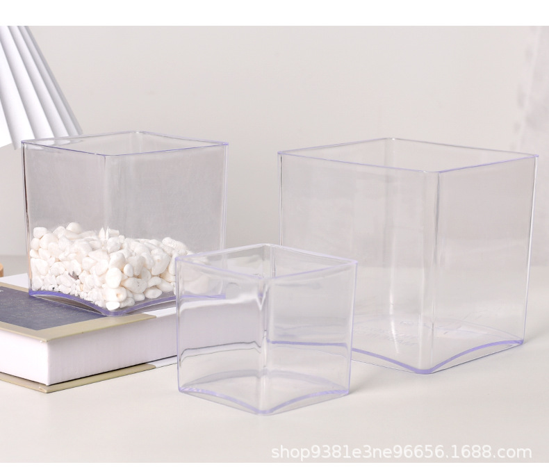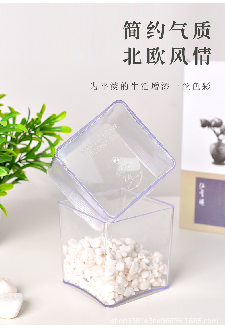수경 녹색 심기 꽃 냄비 광장 두꺼운 투명 아크릴 스퀘어 실린더 높은 컬러 값 디스플레이 박스 라벨 상자 저장 양동이