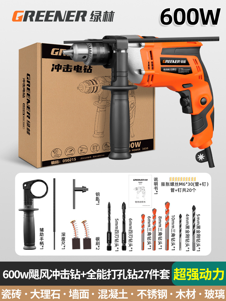 녹색 숲 충격 드릴 가정용 손으로 전기 드릴 다기능 핸드 건 드릴 작은 전기 해머 전기 턴 홀 드릴 벽 전기 도구스토어 가기