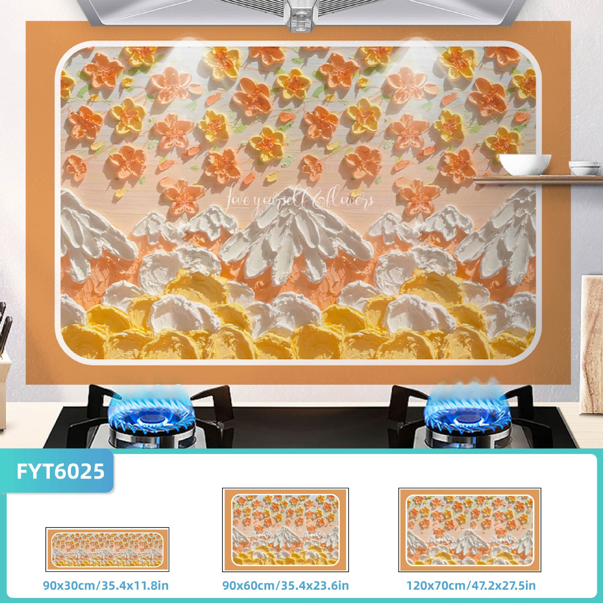 Yiyao FYT6025 에어 가이드 크림 라이트 옐로우 꽃 기름 방지 스티커 주방 방수 내열 장식 자체 접착 스티커스토어 가기