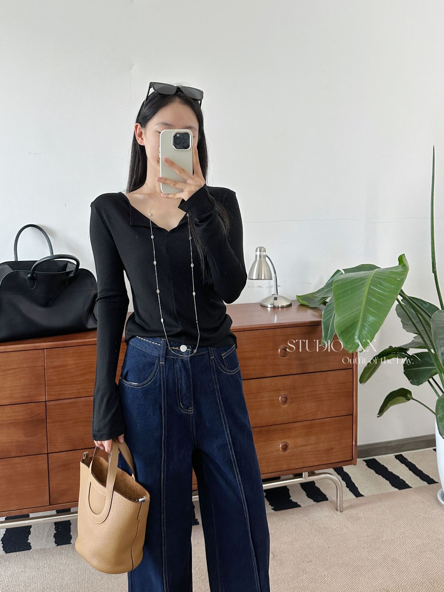 黑科技依翡丝蚕丝羊毛开门襟方领打底衫