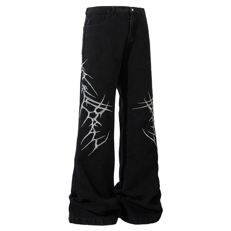 Qilin 남자 아메리칸 스타일 스트리트 가시 자수 틈새 올 매치 루즈 스트레이트 청바지 남자 캐주얼 트렌디 팬츠