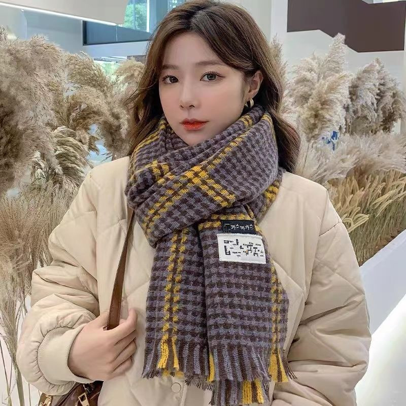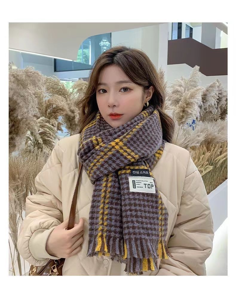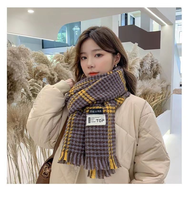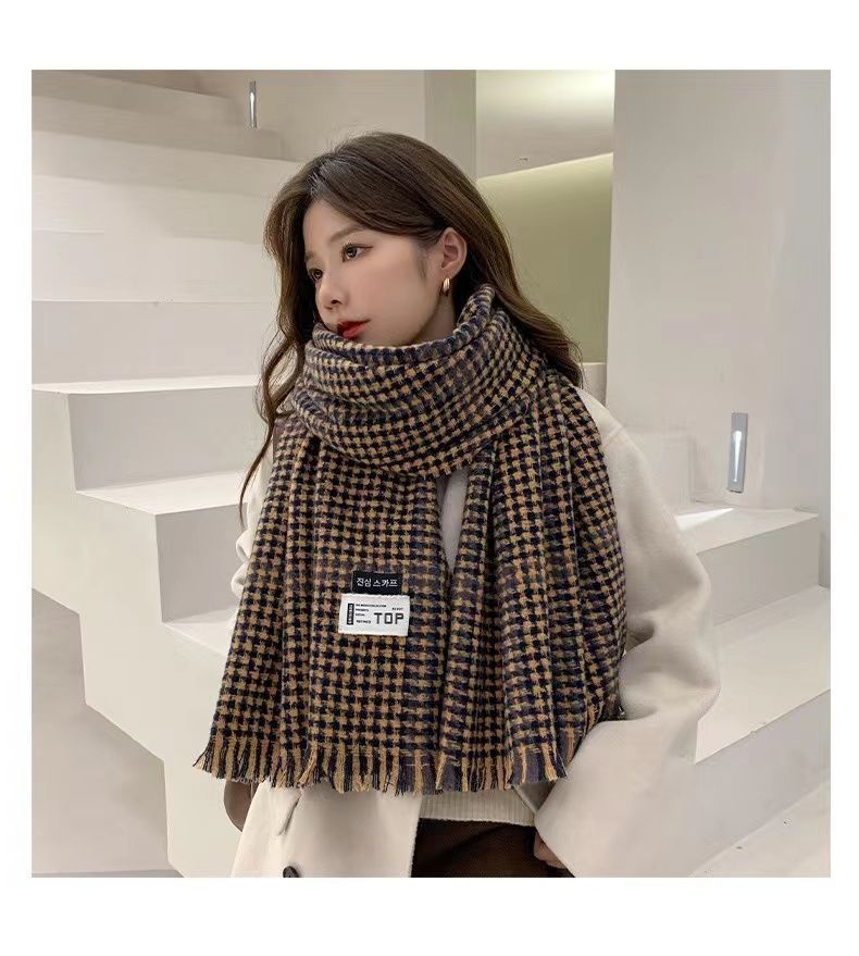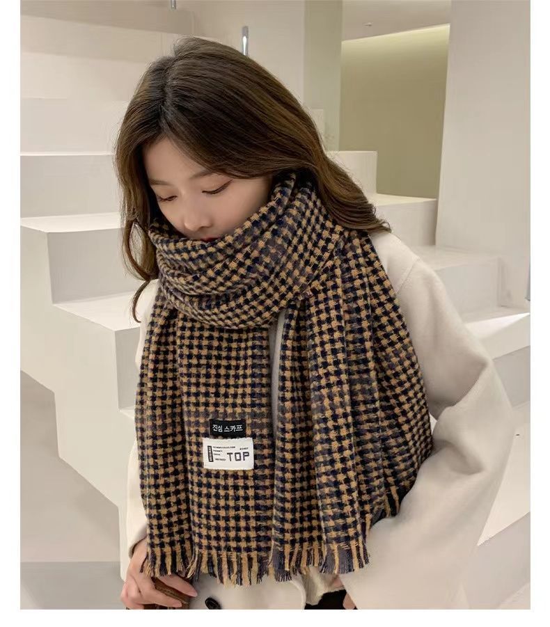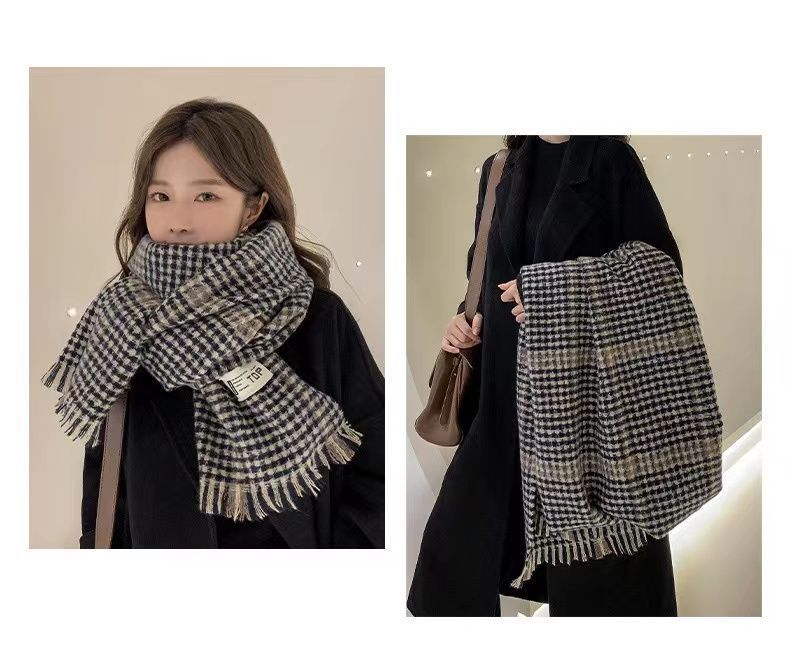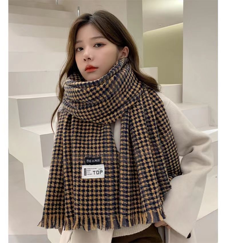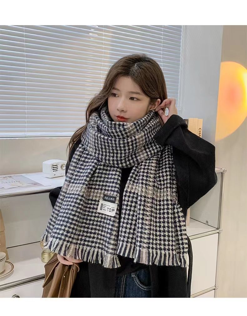 새로운 한국식 Houndstooth 한국식 분위기 여성 겨울 스카프 두꺼운 따뜻한 영어 스타일 이중 목적 스카프스토어 가기