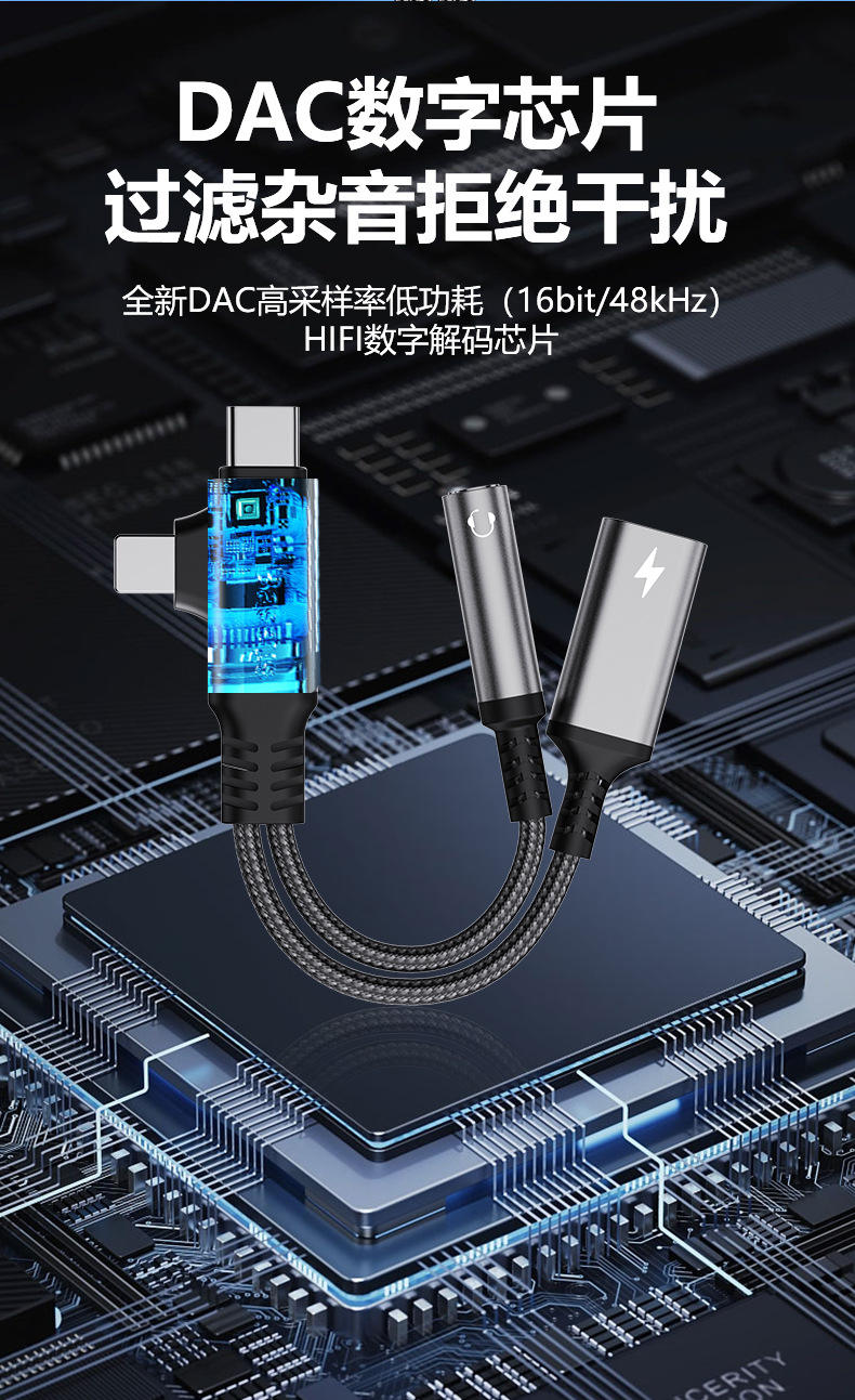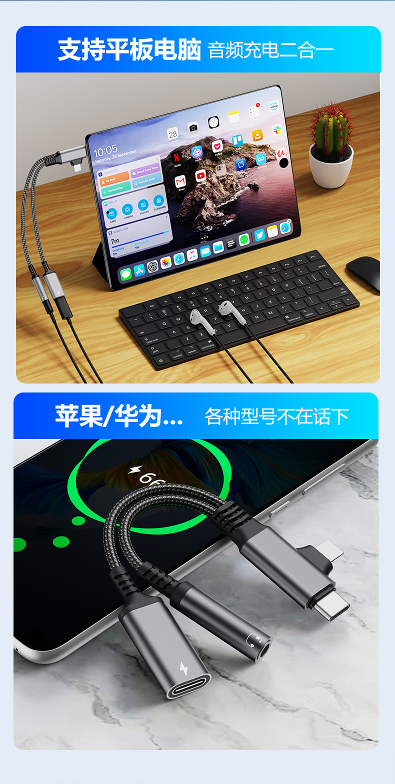 Apple iphone15 용 노래 듣기 및 2 대 1 어댑터 충전을위한 국경 간 유형-c 오디오 케이블 어댑터