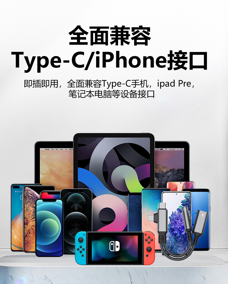 Apple iphone15 용 노래 듣기 및 2 대 1 어댑터 충전을위한 국경 간 유형-c 오디오 케이블 어댑터스토어 가기