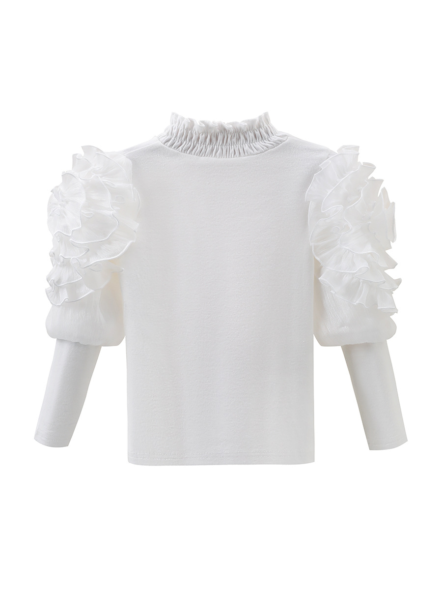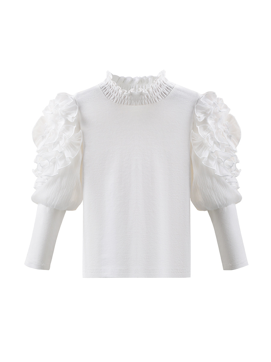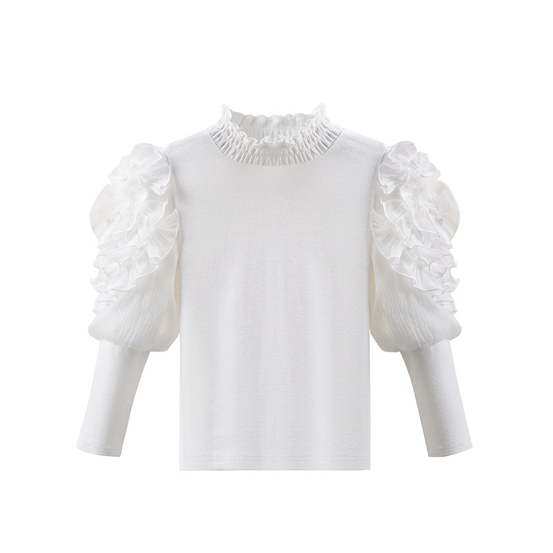 가을과 겨울 새 소녀베이스 셔츠 흰색 슬림 핏 내부 스웨터 베이비 퍼프 슬리브 스웨터 올 매치 탑