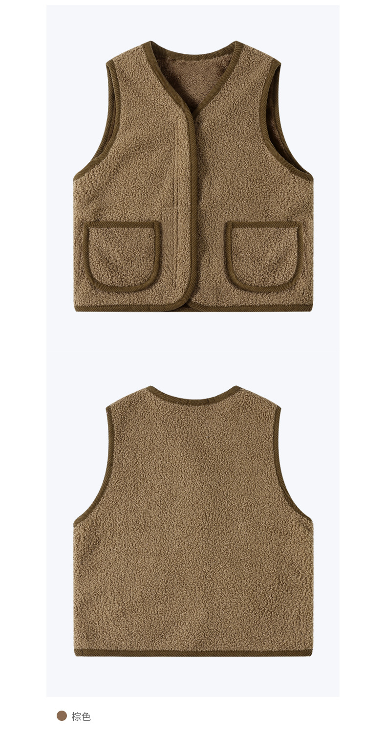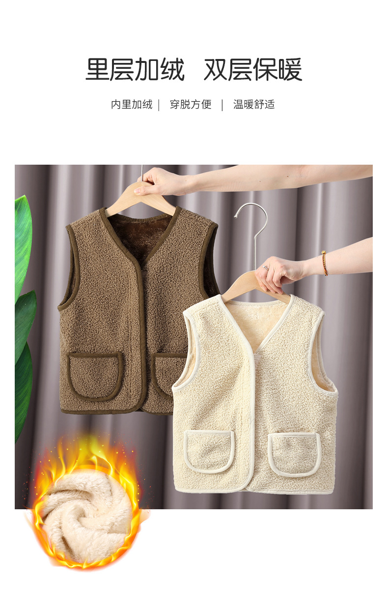 봄 가을과 겨울 어린이 조끼 중소형 어린이 양고기 벨벳 조끼 소년 소녀 기모 따뜻한 조끼 아기 카디건