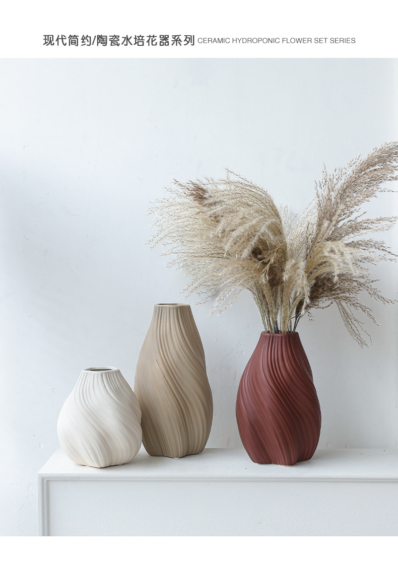 간단한 줄무늬 회전 세라믹 꽃병 장식품 솔리드 컬러 아트 홈 호텔 거실 꽃 배열 수경 컨테이너 장식품