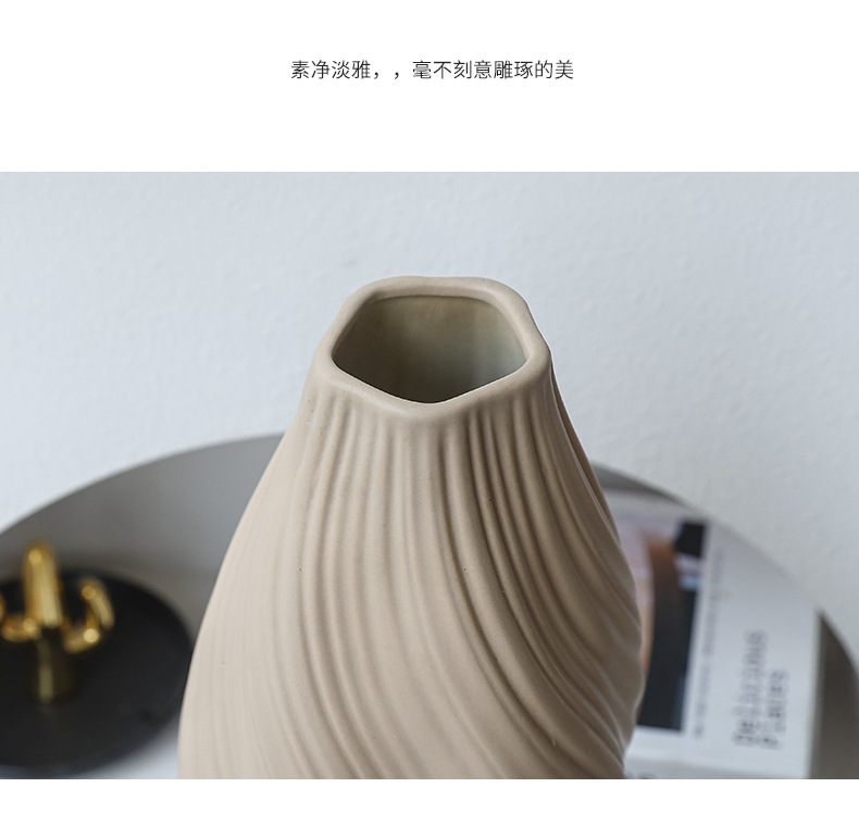 간단한 줄무늬 회전 세라믹 꽃병 장식품 솔리드 컬러 아트 홈 호텔 거실 꽃 배열 수경 컨테이너 장식품스토어 가기