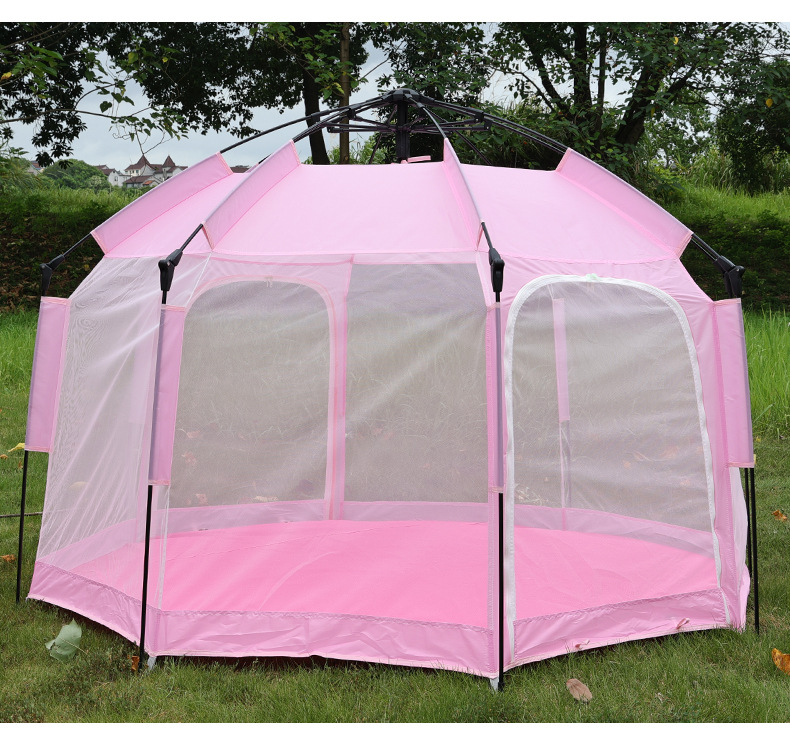 야외 캠핑 텐트 자동 핑크 텐트 휴대용 공원 캠핑 두꺼운 태양 보호 텐트 어린이 텐트