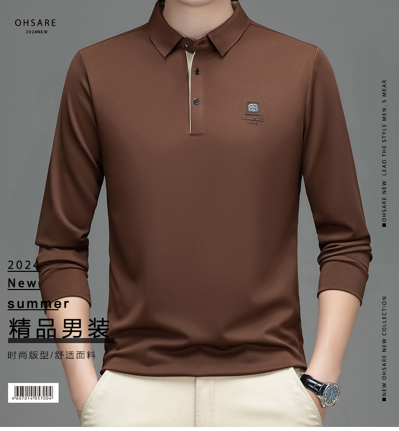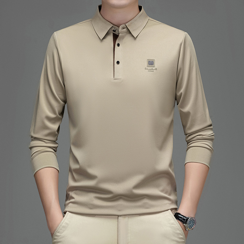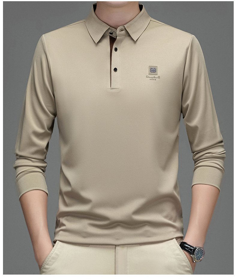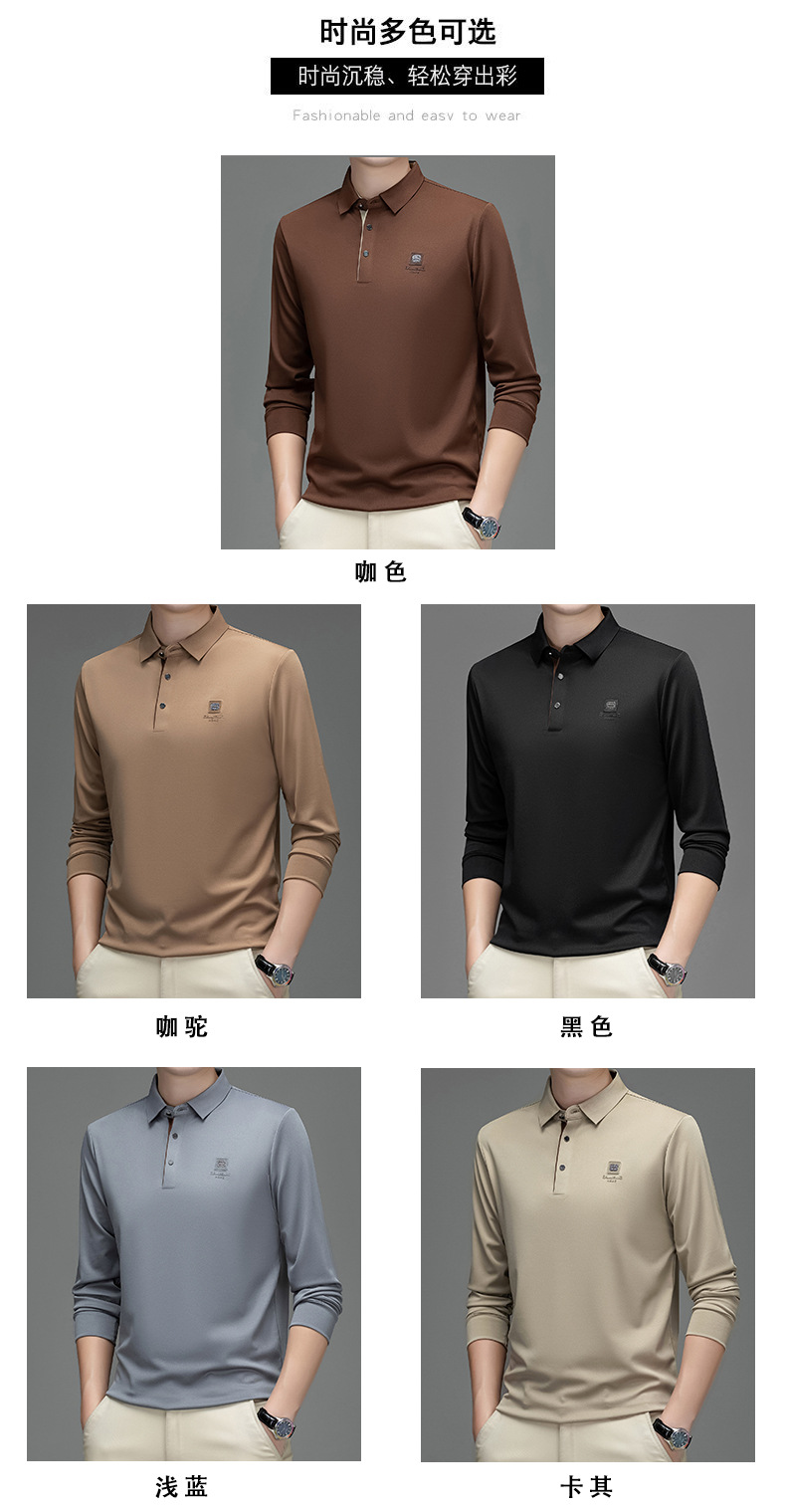 새로운 봄과 가을 남자의 인쇄 긴 소매 티셔츠 캐주얼 Lel Polo 하이 엔드 비즈니스 솔리드 컬러 부드러운 편안한 탑