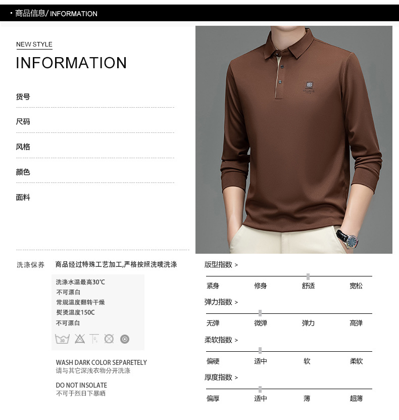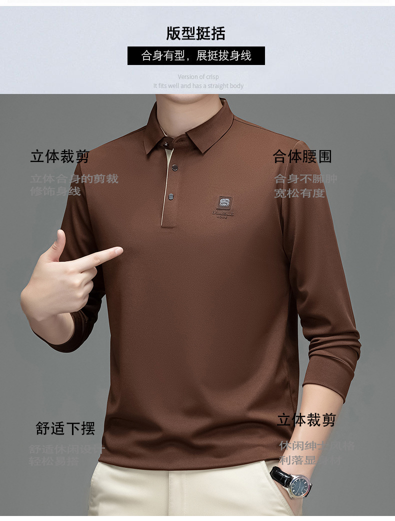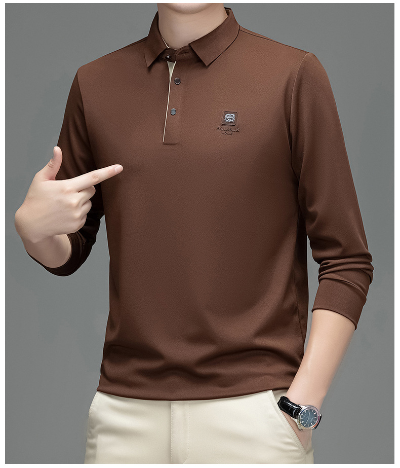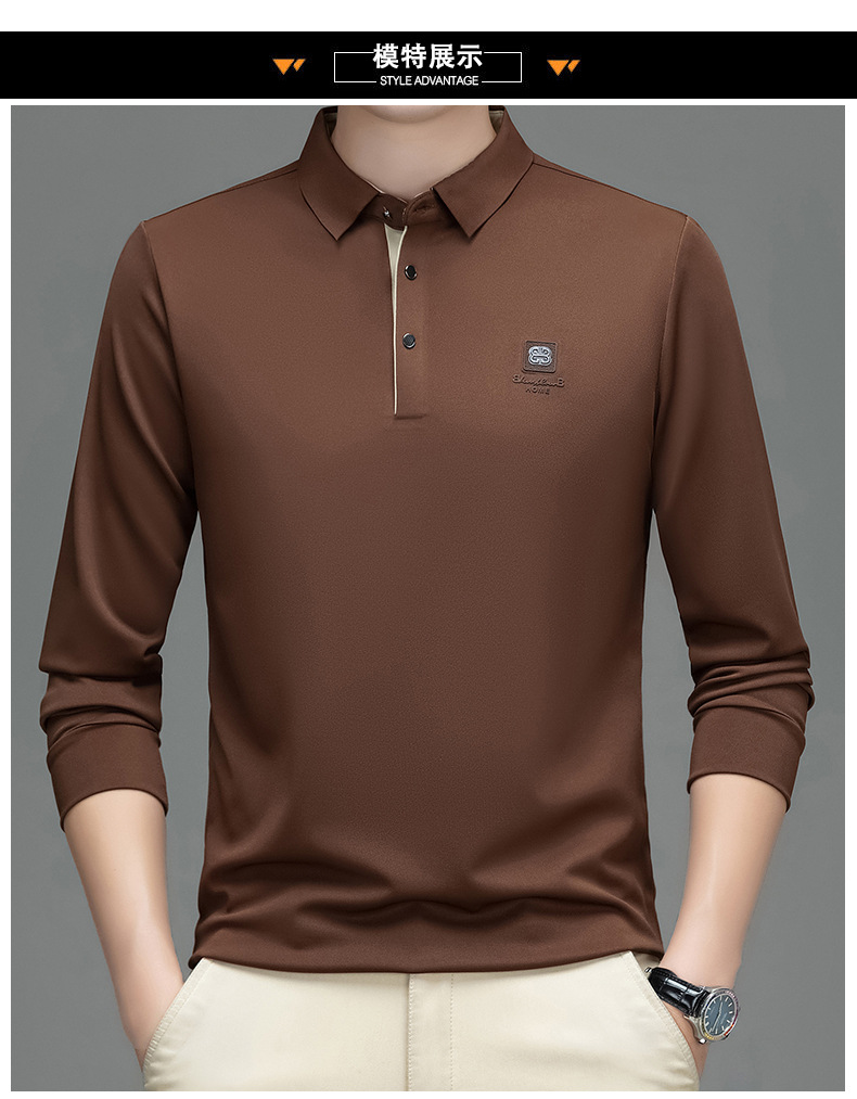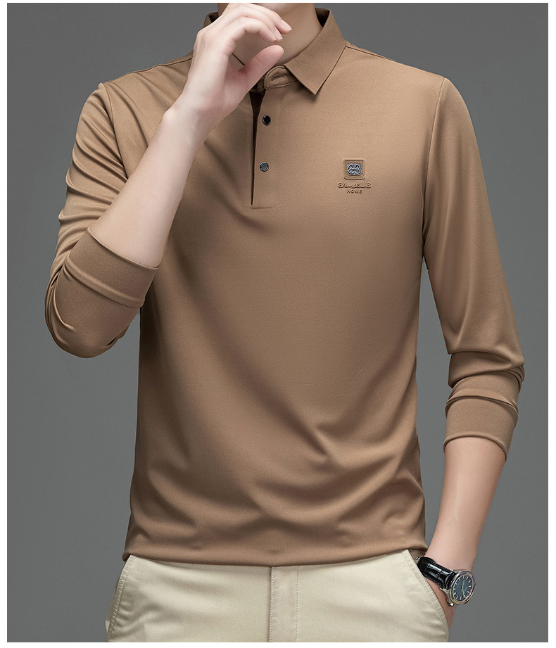 새로운 봄과 가을 남자의 인쇄 긴 소매 티셔츠 캐주얼 Lel Polo 하이 엔드 비즈니스 솔리드 컬러 부드러운 편안한 탑
