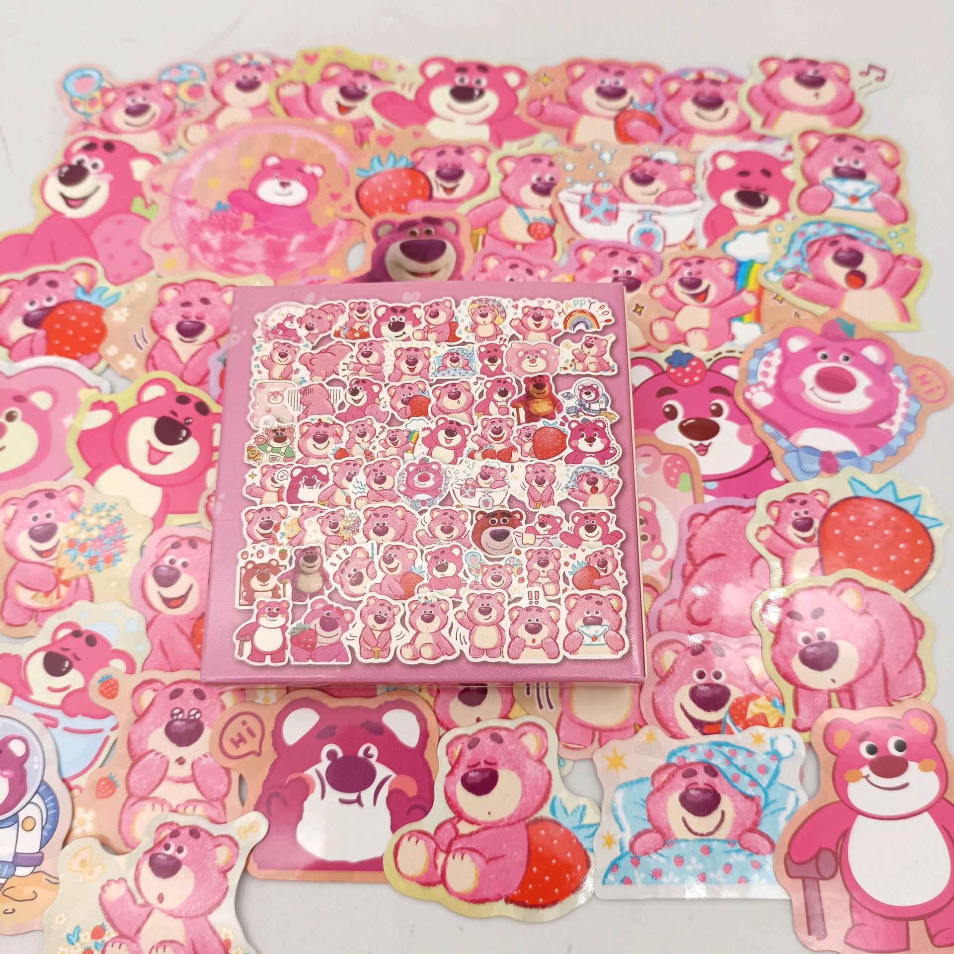 만화 딸기 곰 60 3 스티커 세트 귀여운 소녀 심장 손 책 문구 DIY 장식 스티커 도매