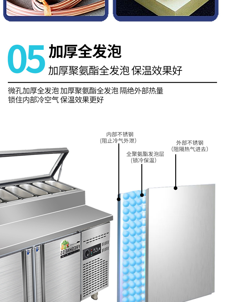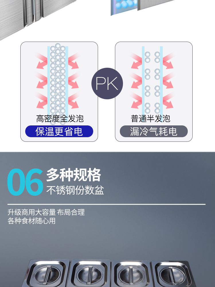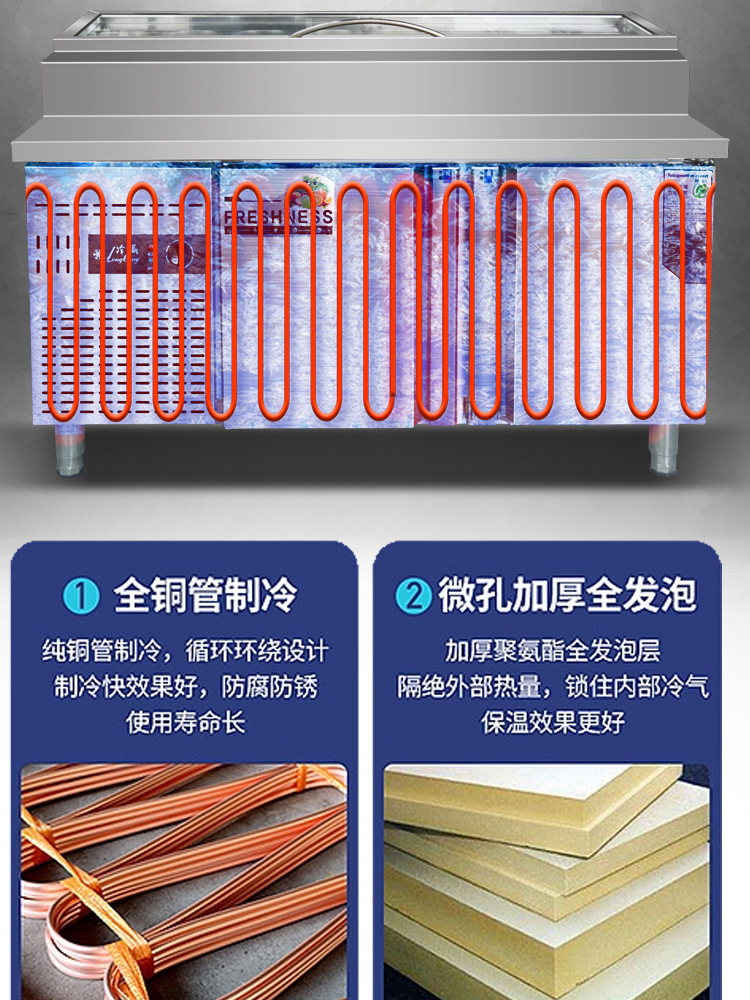 슬롯형 샐러드 테이블, 신선도 유지 진열장, 상업용 반찬 냉장고, 과일 채취 작업대, 냉장 및 냉동 얼음 카운터형
