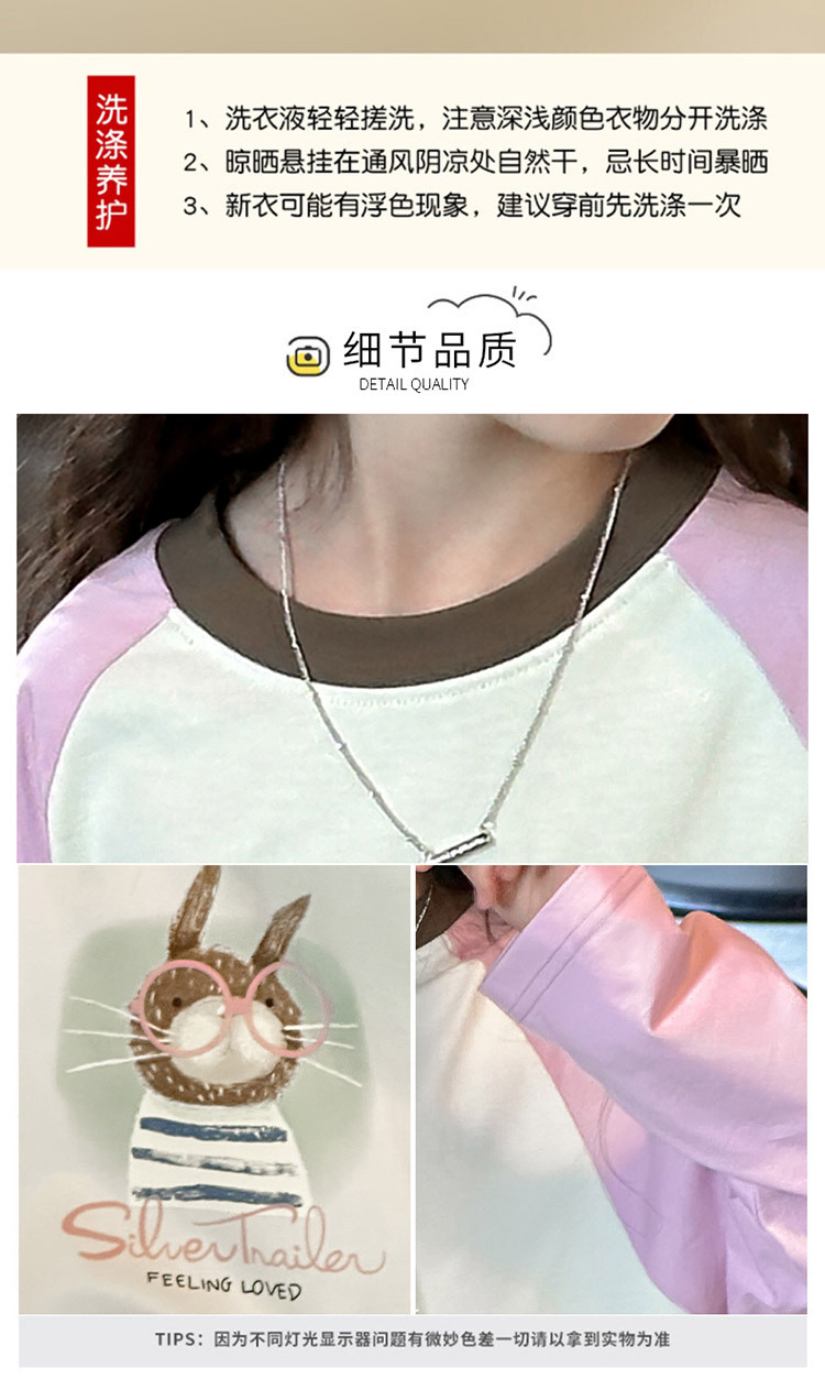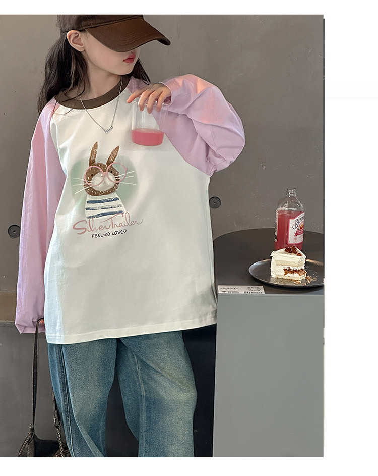 소녀의 만화 토끼 머리 티셔츠 가을 새로운 어린이 핑크 긴 소매 T-컬러 크루 넥베이스 내부 탑