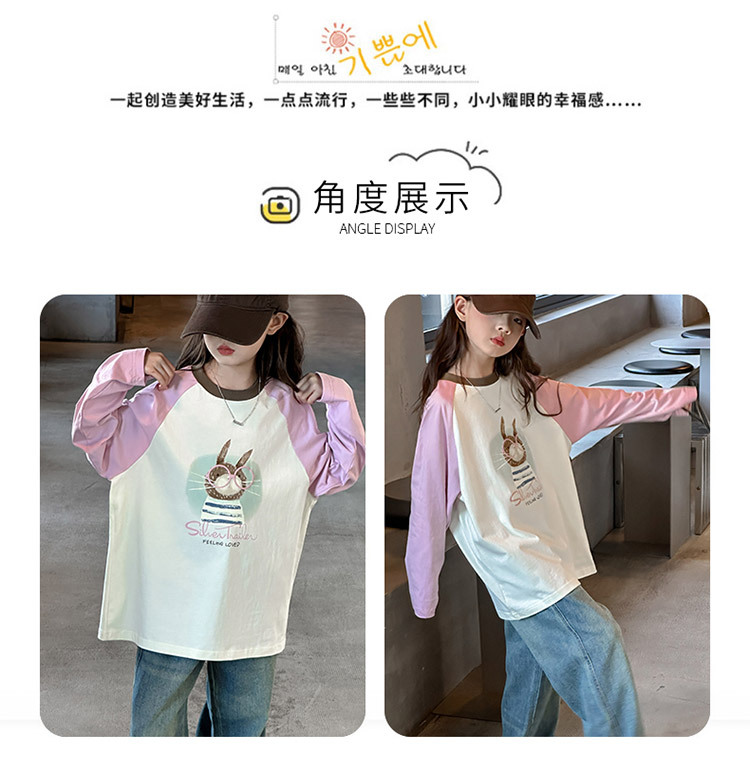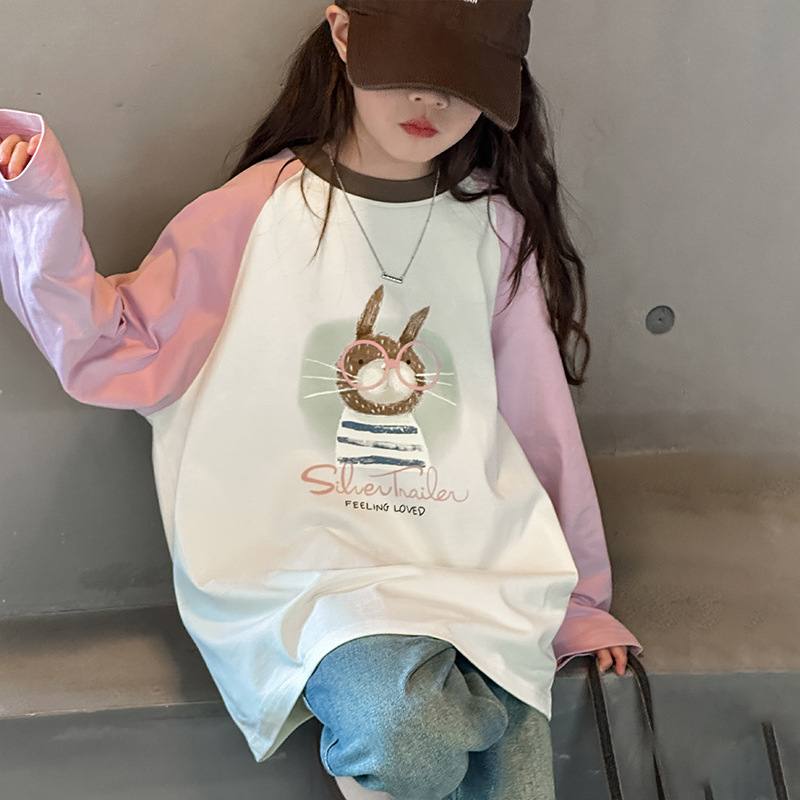 소녀의 만화 토끼 머리 티셔츠 가을 새로운 어린이 핑크 긴 소매 T-컬러 크루 넥베이스 내부 탑스토어 가기