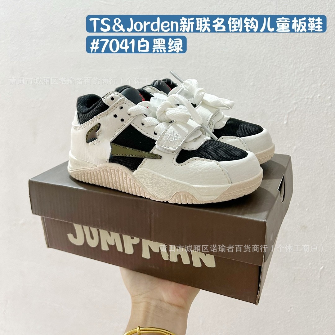 Putian 어린이 신발 순수 오리지널 하이 버전 TS 공동 브랜드 바브 AJ 어린이 로우 탑 운동화 소년 소녀 복고풍 농구 신발