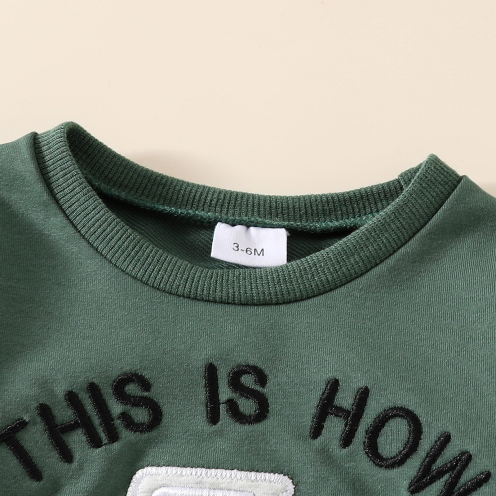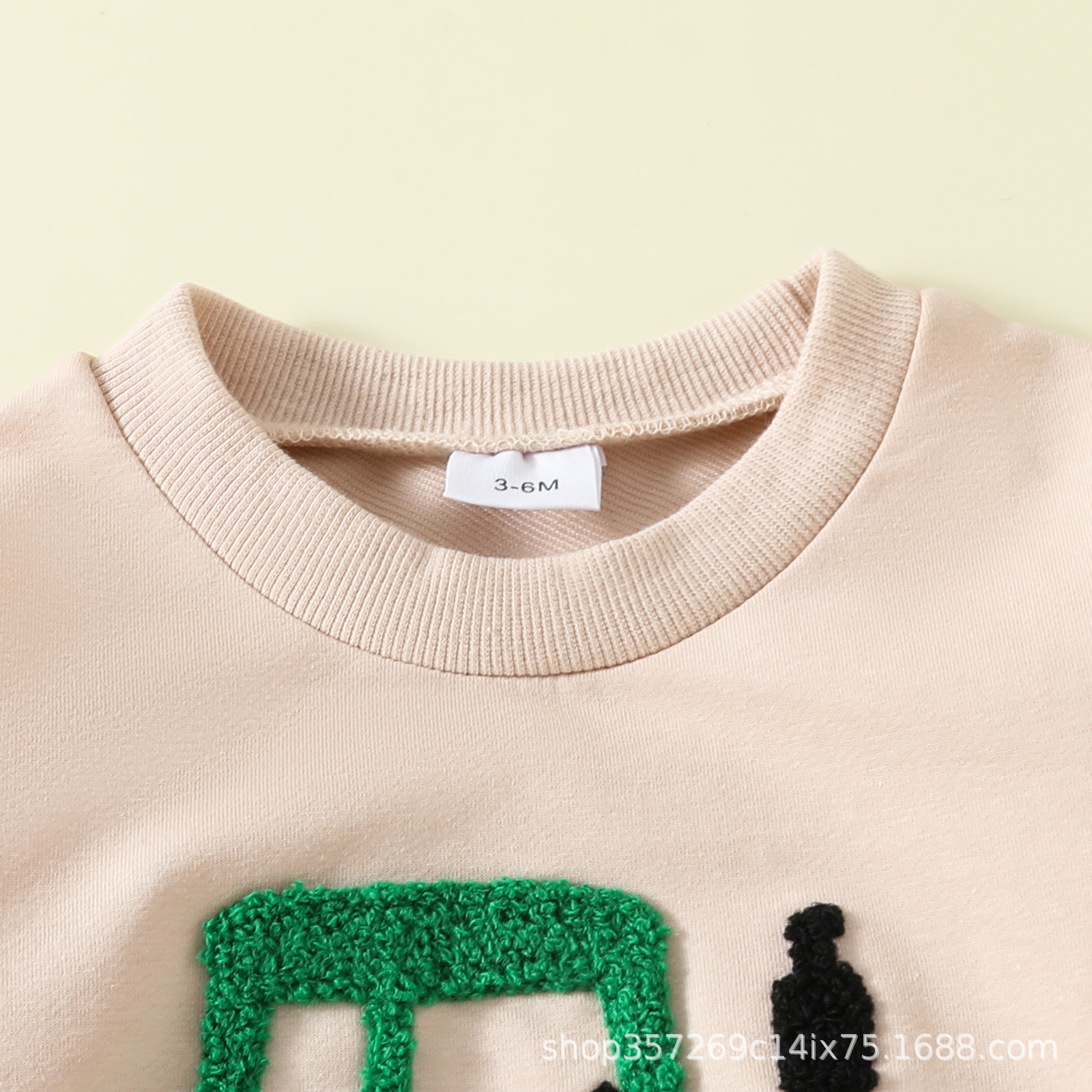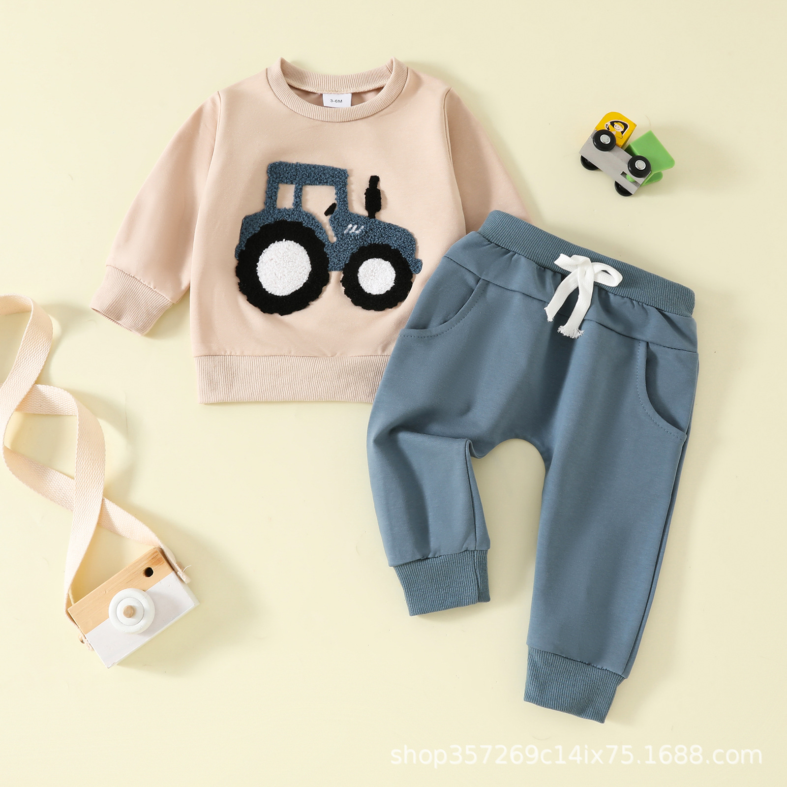 봄과 가을 재고 긴팔 인쇄 된 솔리드 컬러 풀 오버 솔리드 컬러 슬림 핏 세련된 코튼 바지 투피스 세트 스웨트 셔츠스토어 가기
