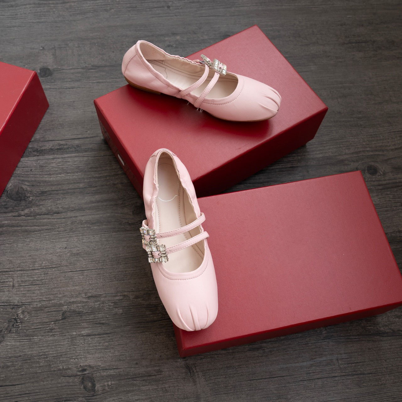 스퀘어 헤드 라인스톤 플랫 발레 신발 메리 제인 여성 신발 구름 밀크 신발 편안한 통기성 더블 스트랩 신발 경량