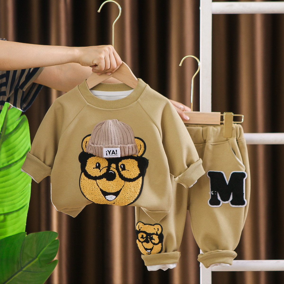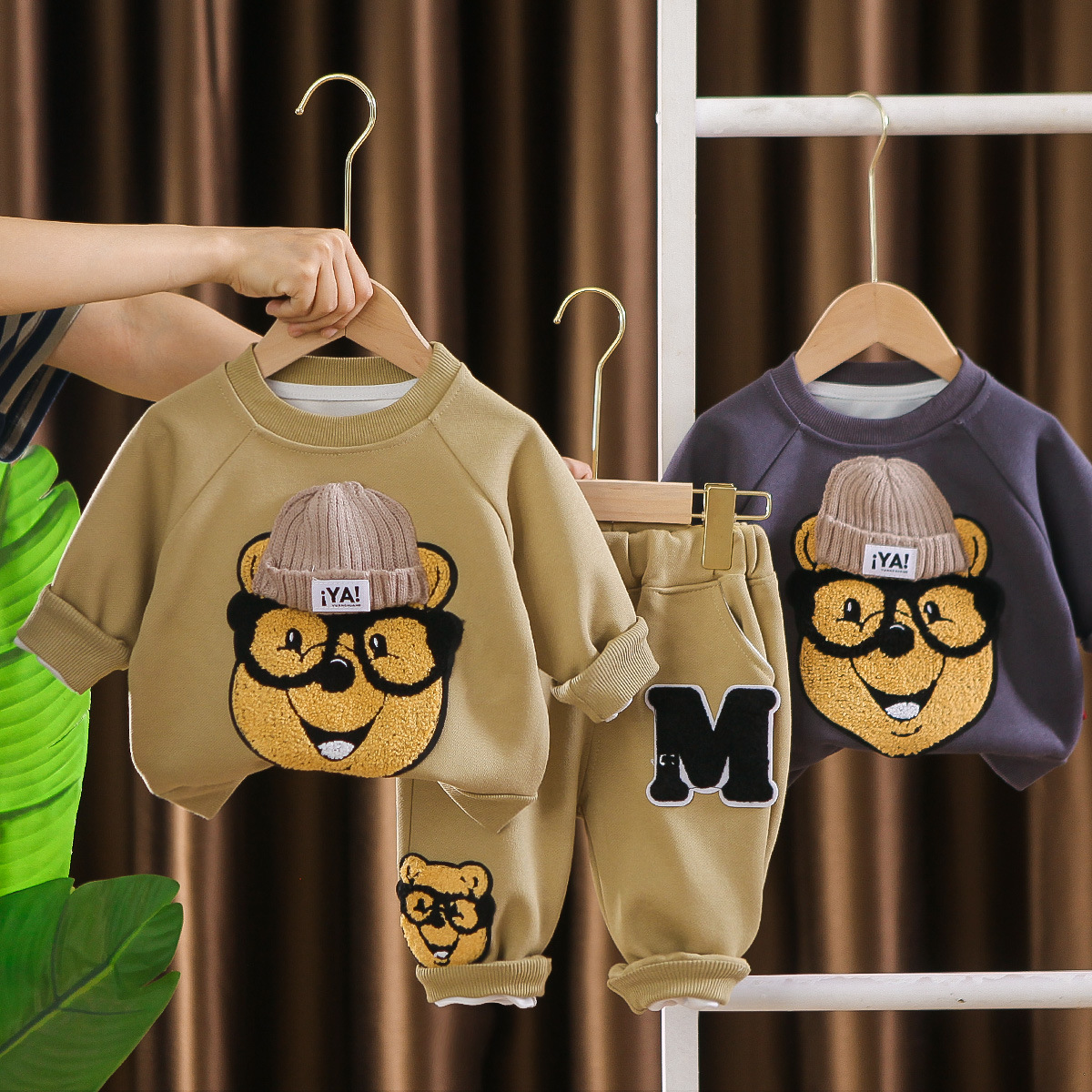 아기 세트 2024 새로운 세련된 만화 긴 소매 스웨트 셔츠 유행 유행 유행 아이 두 조각 세트스토어 가기