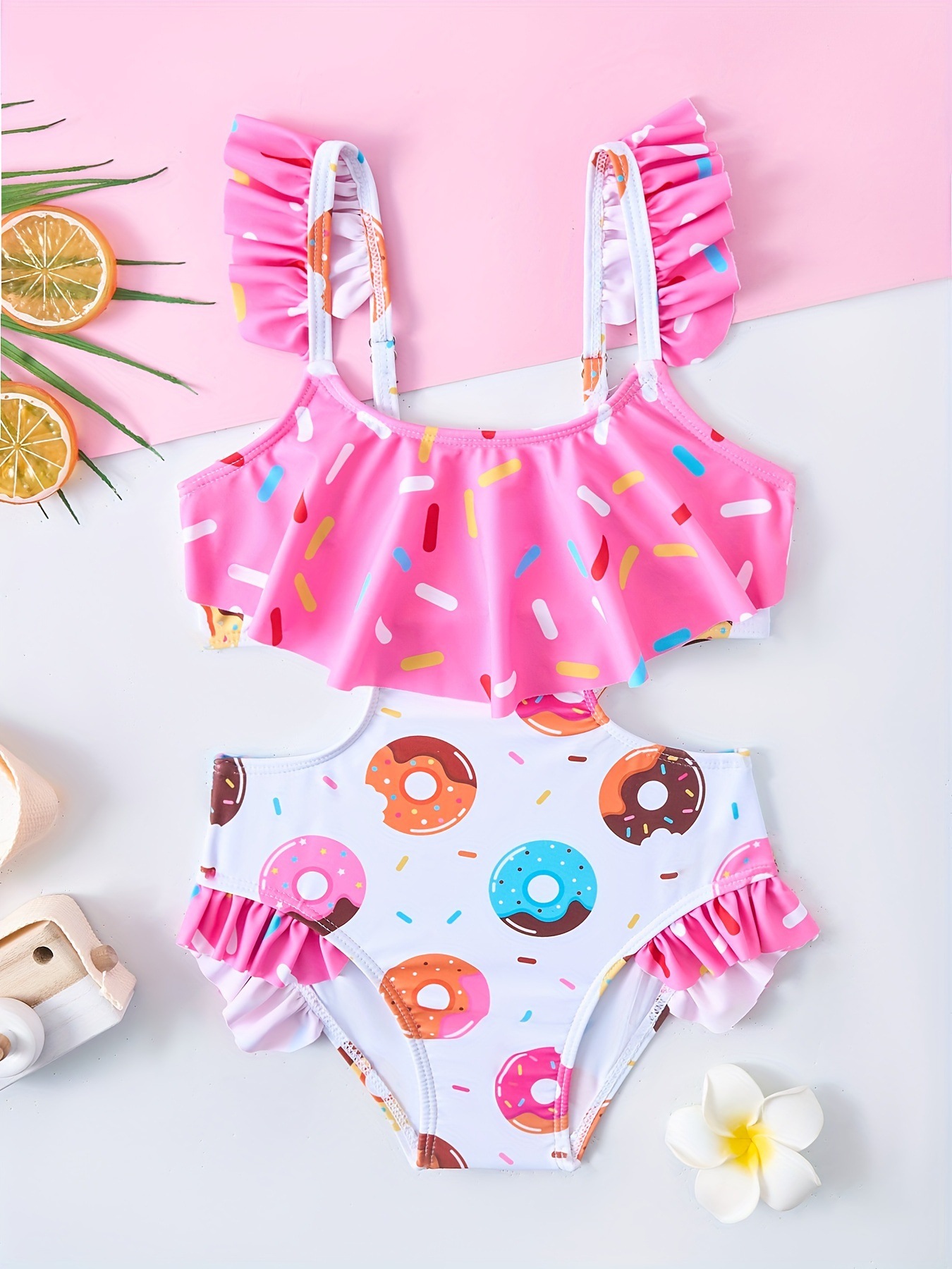 새로운 여자 수영복 프릴 물고기 비늘 패턴 작은 공주 귀여운 스타일 어린이 수영복 태양 보호 Bowknot
