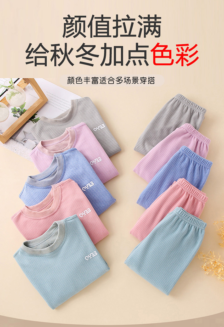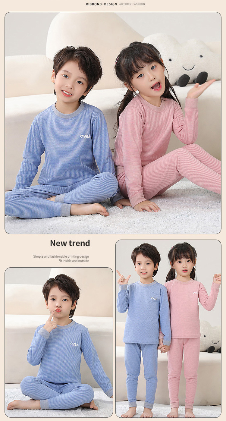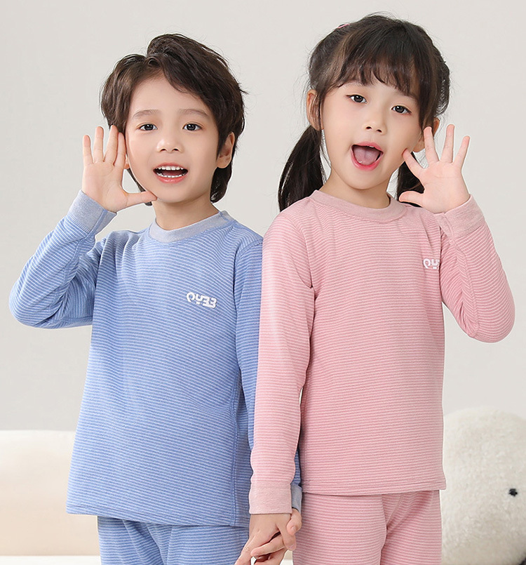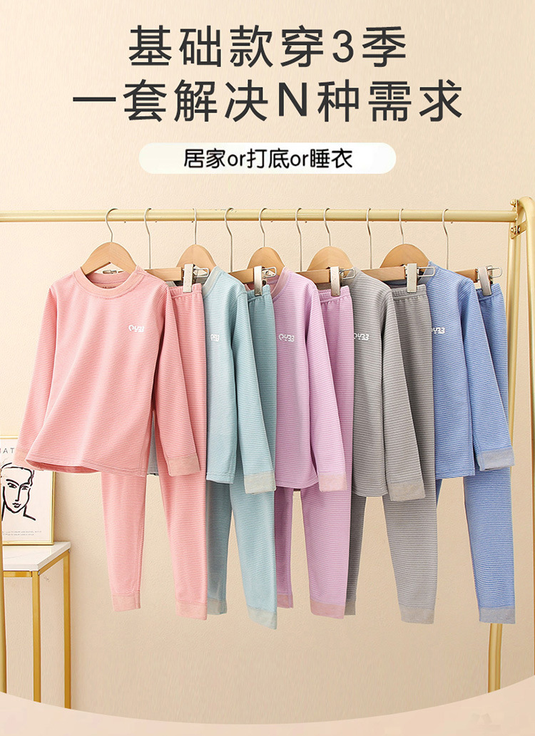 가을과 겨울 가정 의류 부모 자식 파자마 뼈없는 미들 스트라이프 백킹을 세트 cuhk 어린이 캐시미어 실크 열 속옷