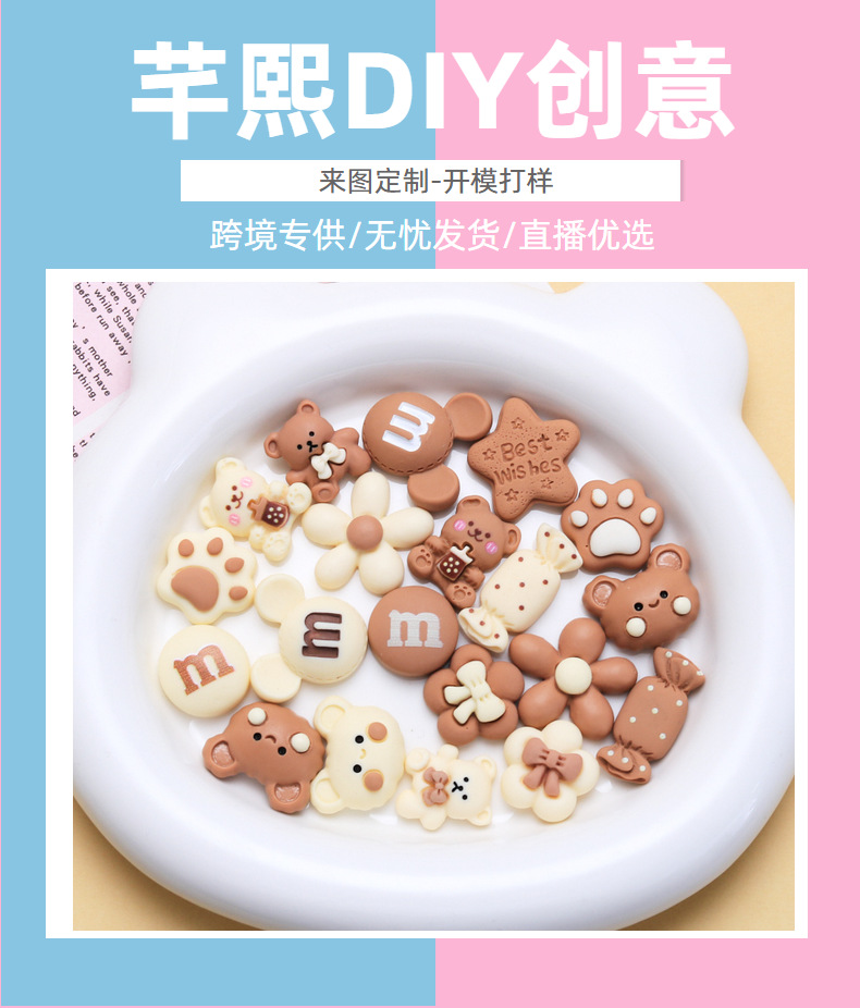 쌀 다크 브라운 스타일 혼합 만화 DIY 작은 보석 크림 접착제 액세서리 헤어핀 구멍 신발 버클 수지 장식 액세서리스토어 가기