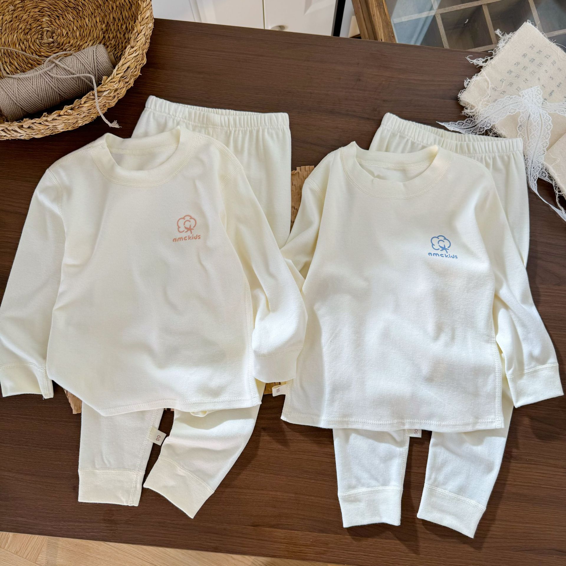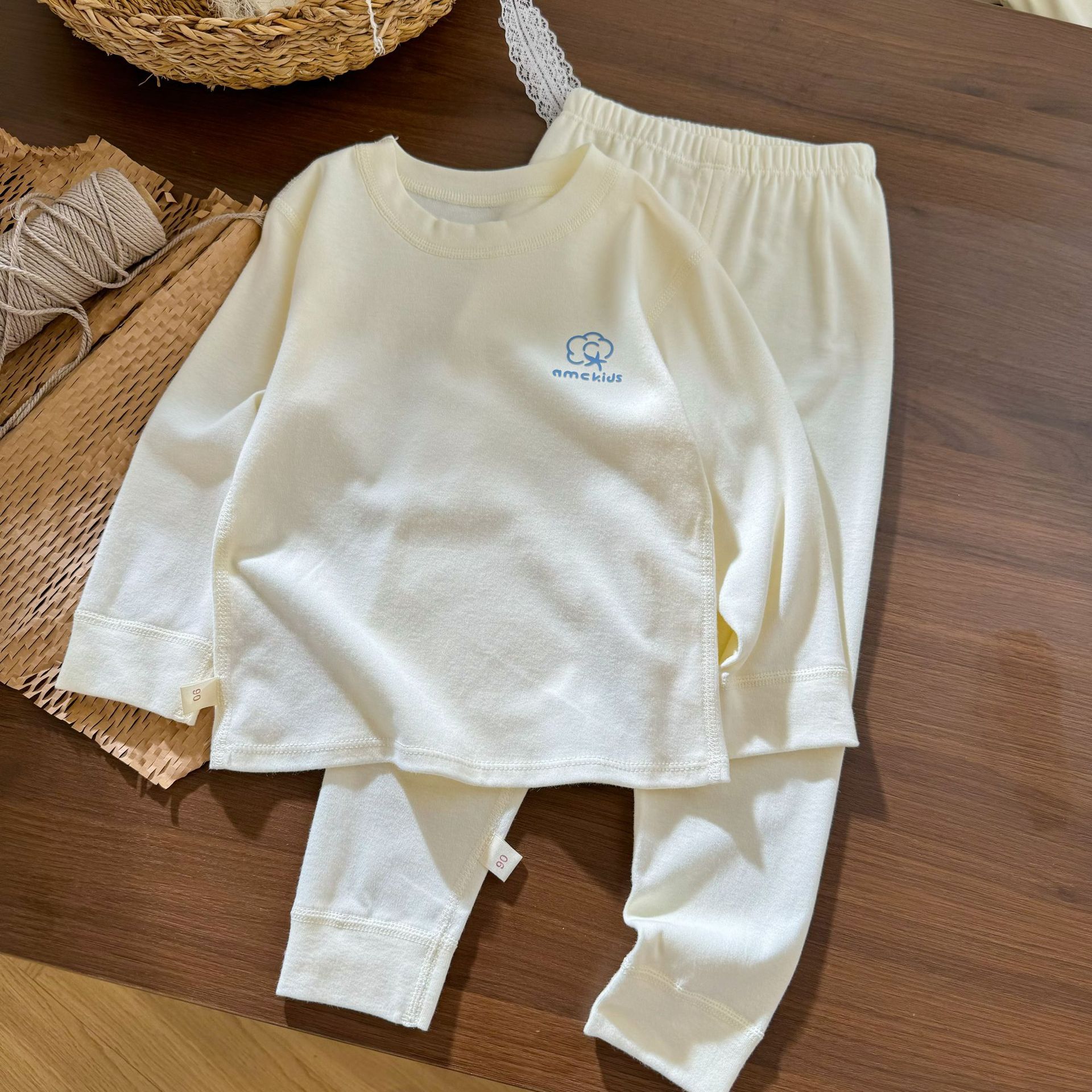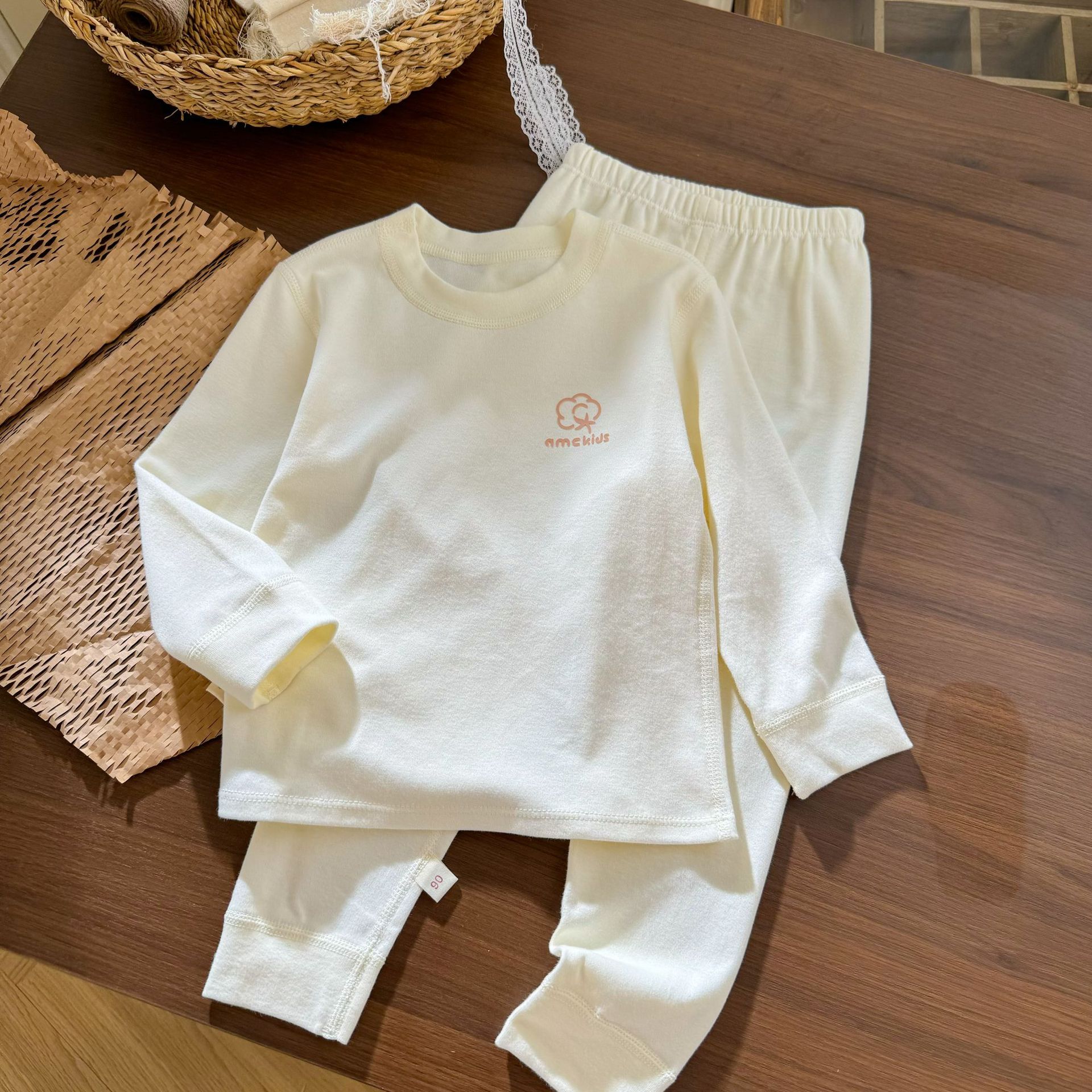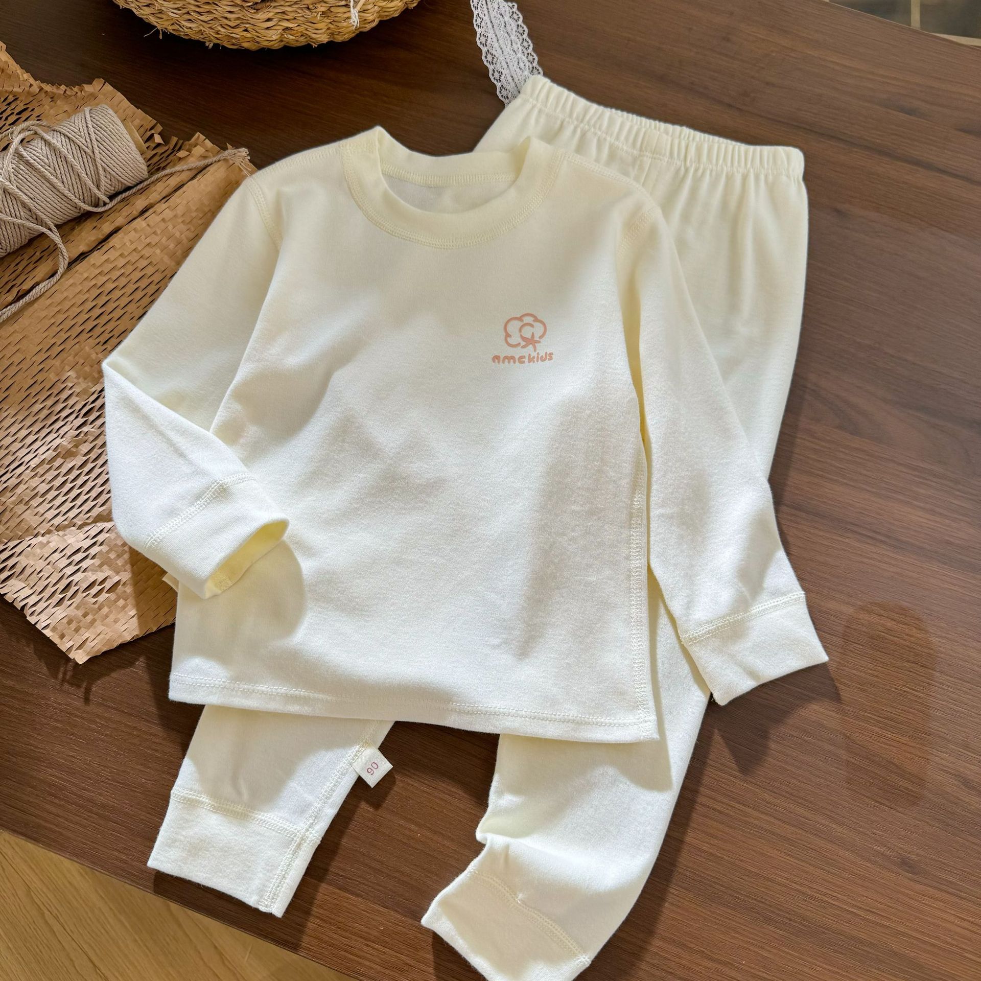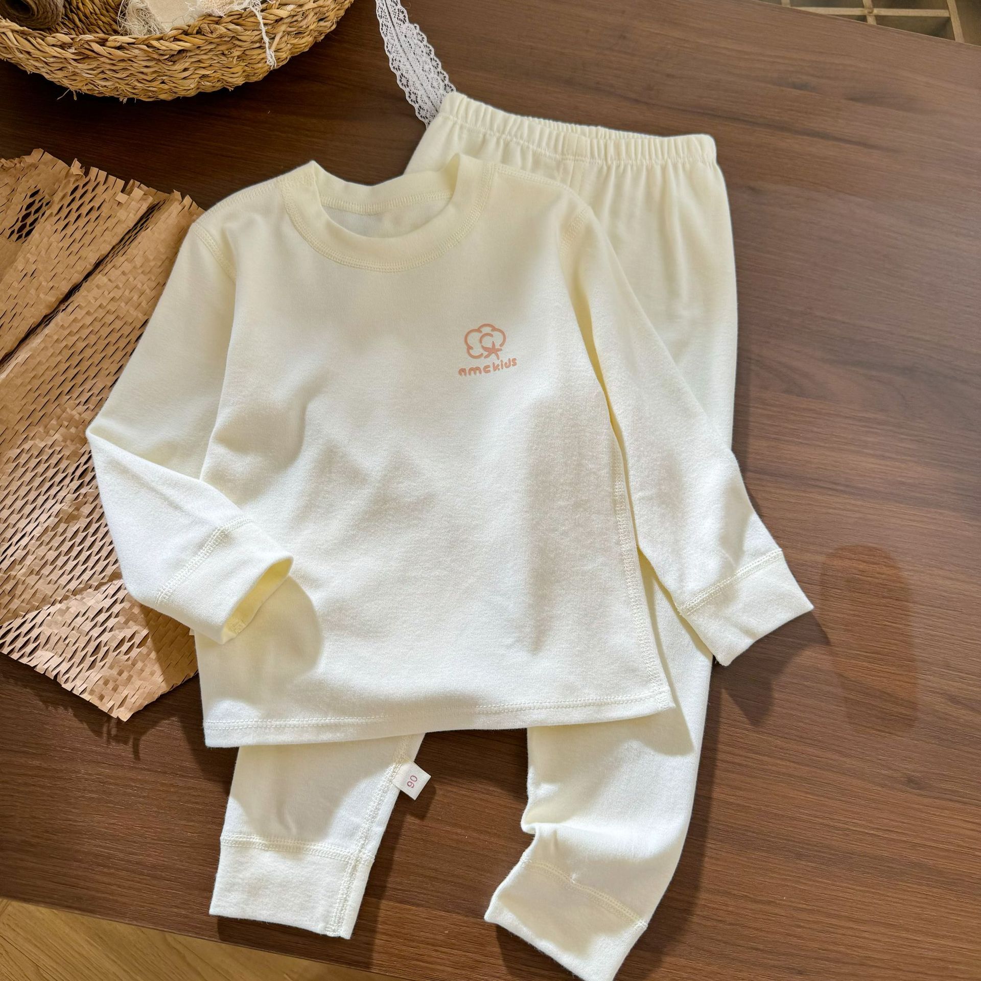오미아오 콩 어린이 유기농 면화 속옷 세트 긴팔 바지 한국 스타일 남자와 여자의 샌딩 가을 옷 가을 바지 홈 옷스토어 가기