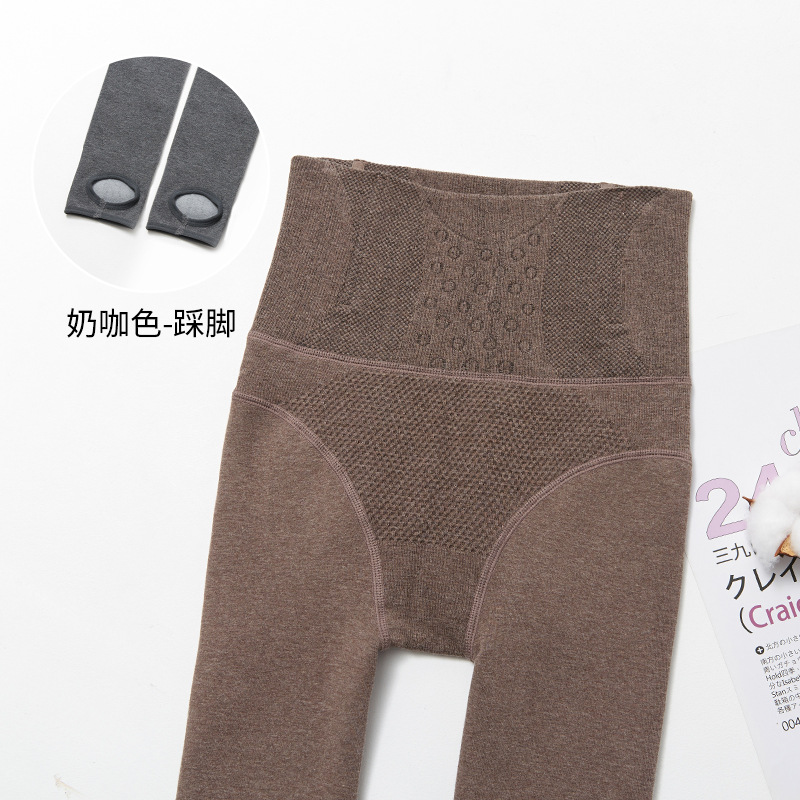 Combed 면 높은 허리 Fishbone 팬티 스타킹 안티 마모 모양의 기모 두꺼운 슬림 핏 복부 엉덩이 리프팅 레깅스 팬티 스타킹