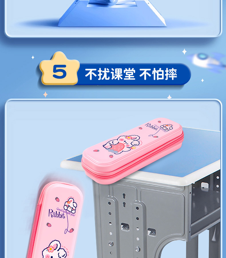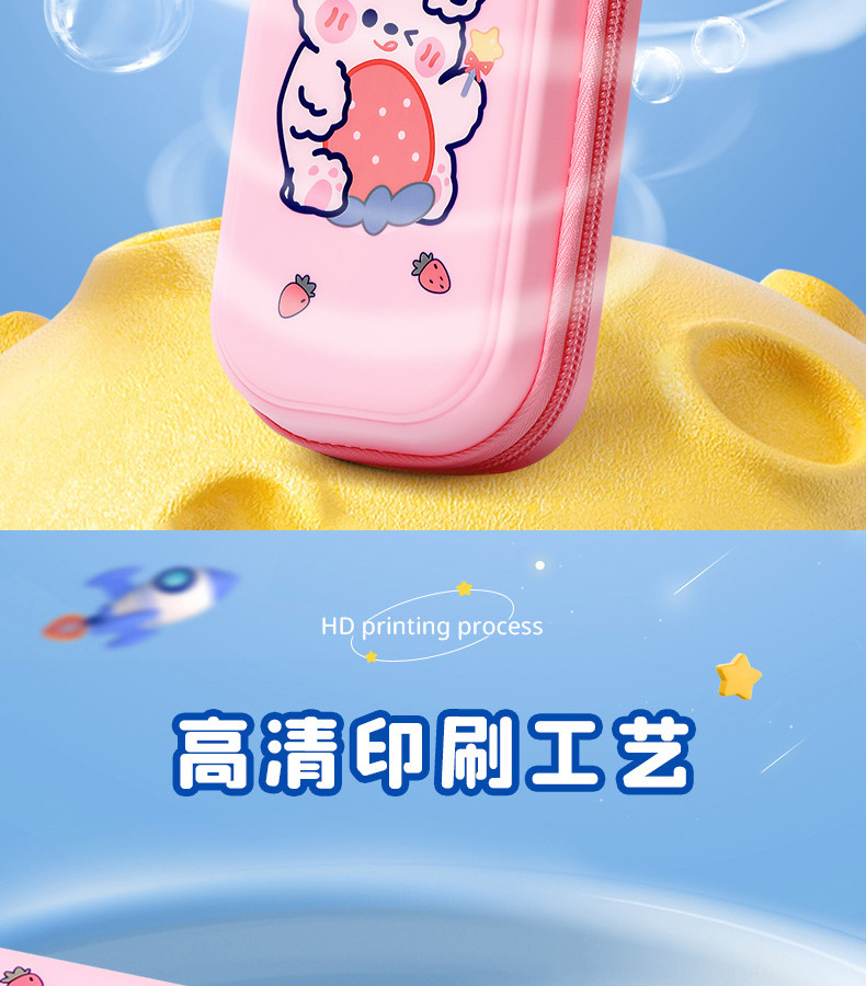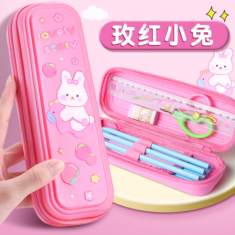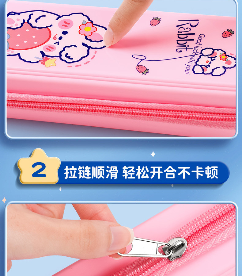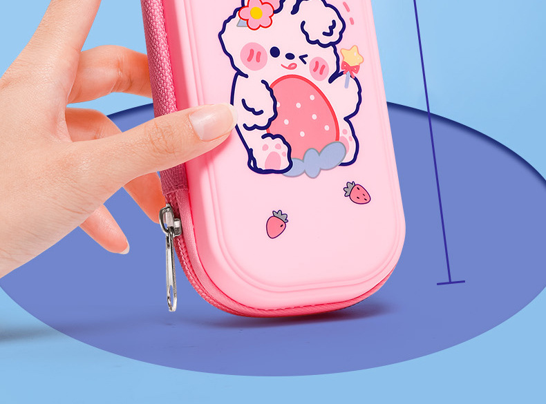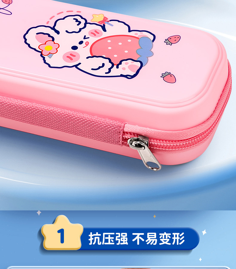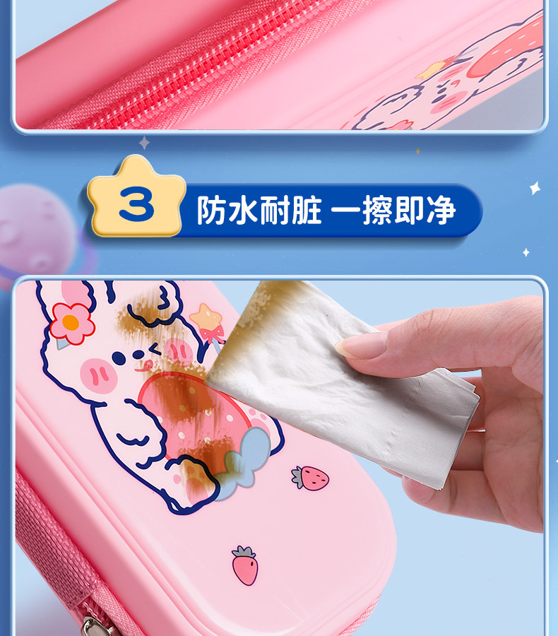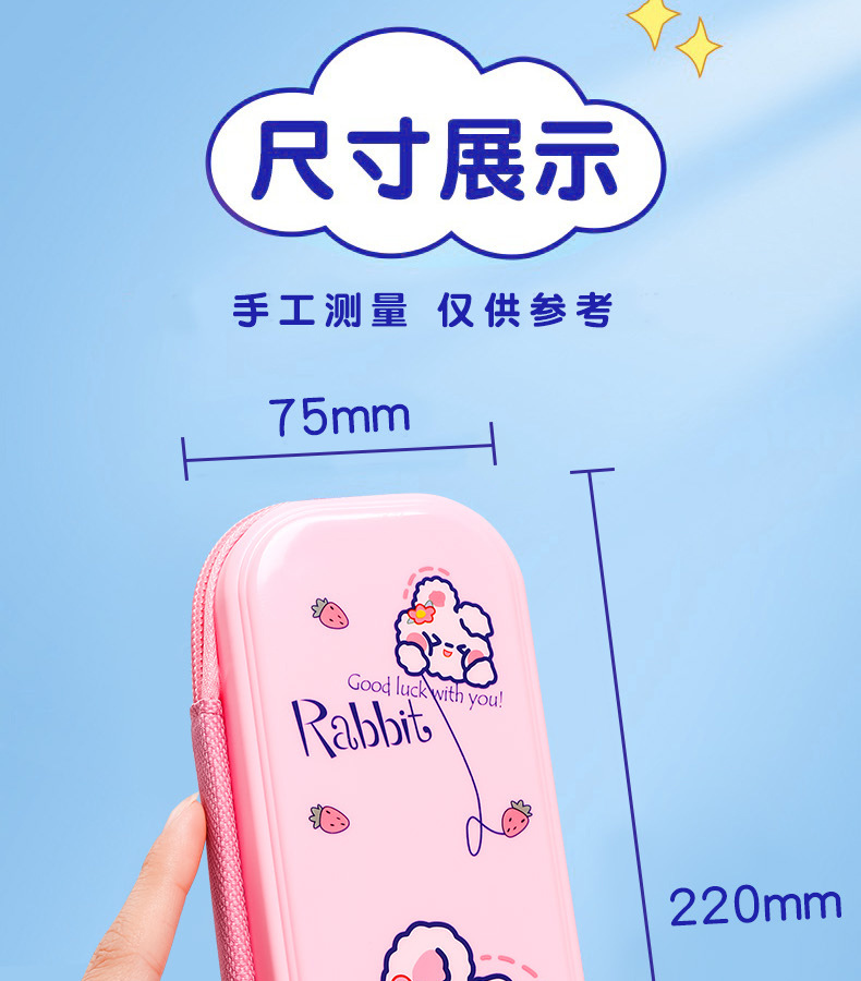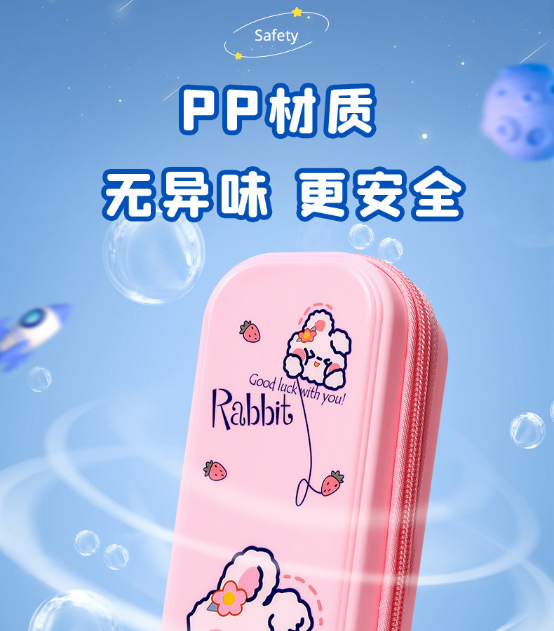• 【업그레이드된 소재, 더욱 두꺼워진】 심플 PP 필통 / 핑크 딸기 토끼