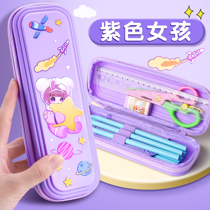• 【업그레이드된 소재, 더욱 두꺼워진】 심플 PP 필통 / 보라색 꼬마 소녀