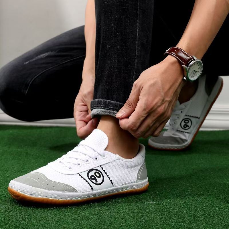 남성과 여성을위한 새로운 쇠고기 단독 미끄럼 방지 편안한 캔버스 운동화 러닝 슈즈 트랙 및 필드 우슈 트레이닝 화이트 슈즈스토어 가기