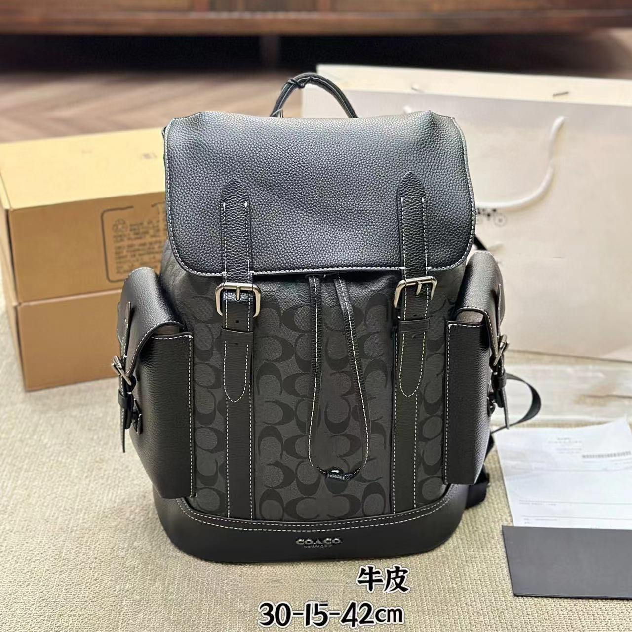 신형 남성용 C 브랜드 플립백 백팩 등산 가방 클래식 올드 플라워 스타일 최고급 소가죽 대용량스토어 가기
